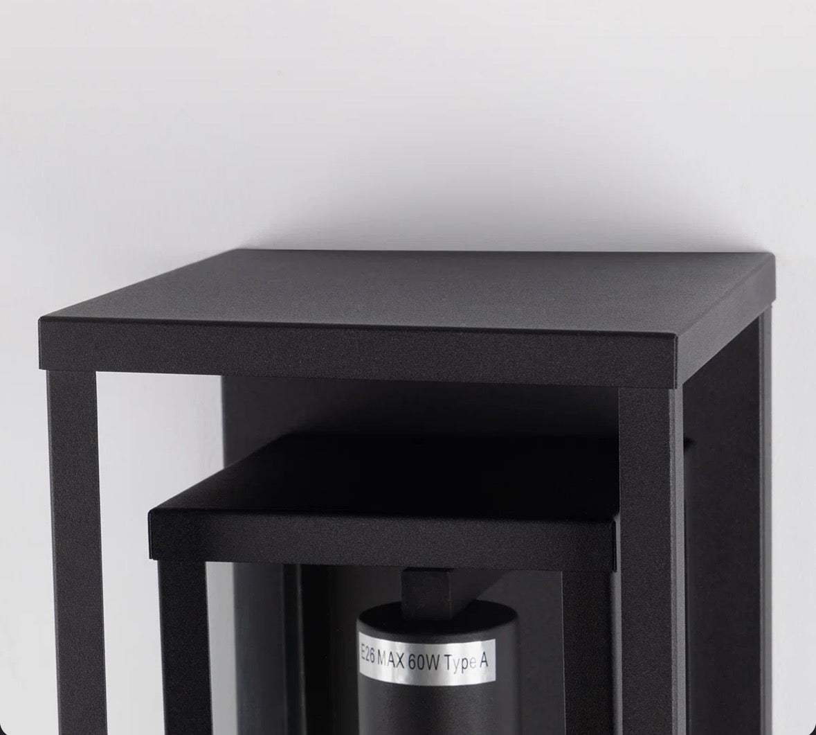 17 Stories Rasharkin Classic Outdoor Wall Sconce 1 Light Rectangular Metal Frame and Clear Glass Shade Waterproof (Set of 2)