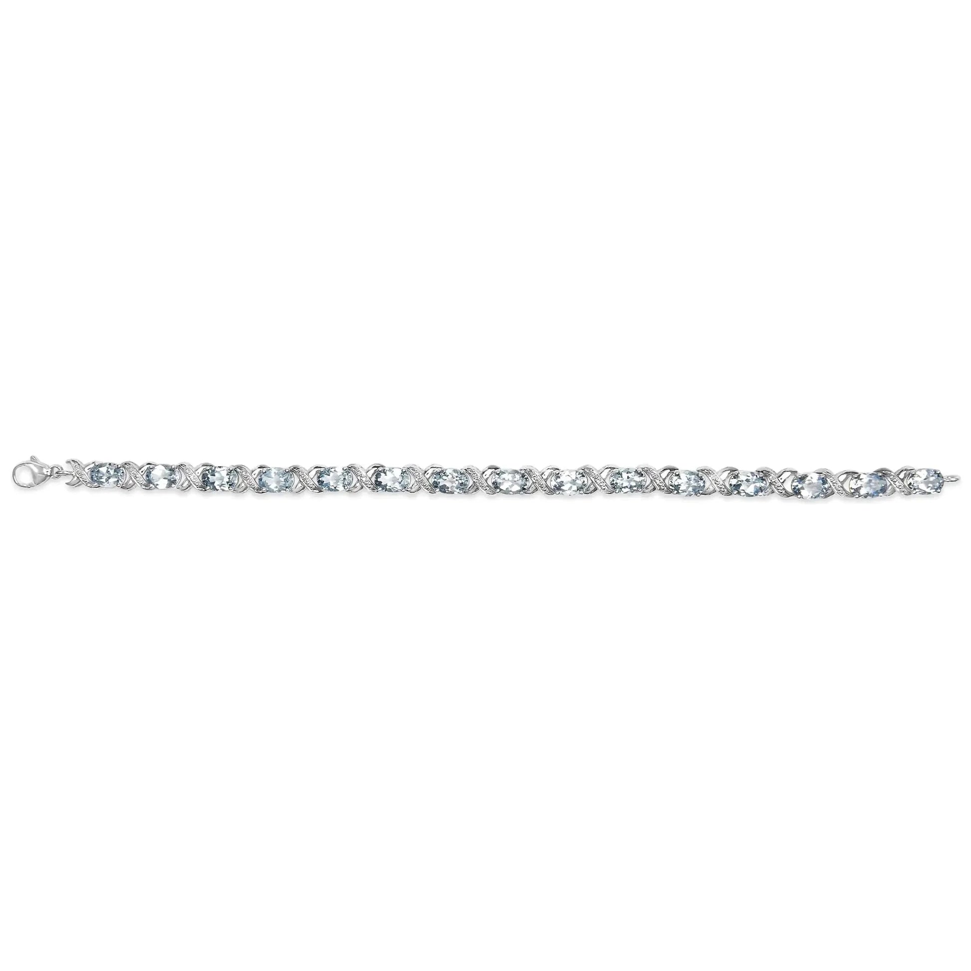 .925 Sterling Silver 16.0 Cttw Oval Blue Topaz and Diamond Accent Tennis X Link Bracelet (I-J Color, I1-I2 Clarity) - Size 7" Inch