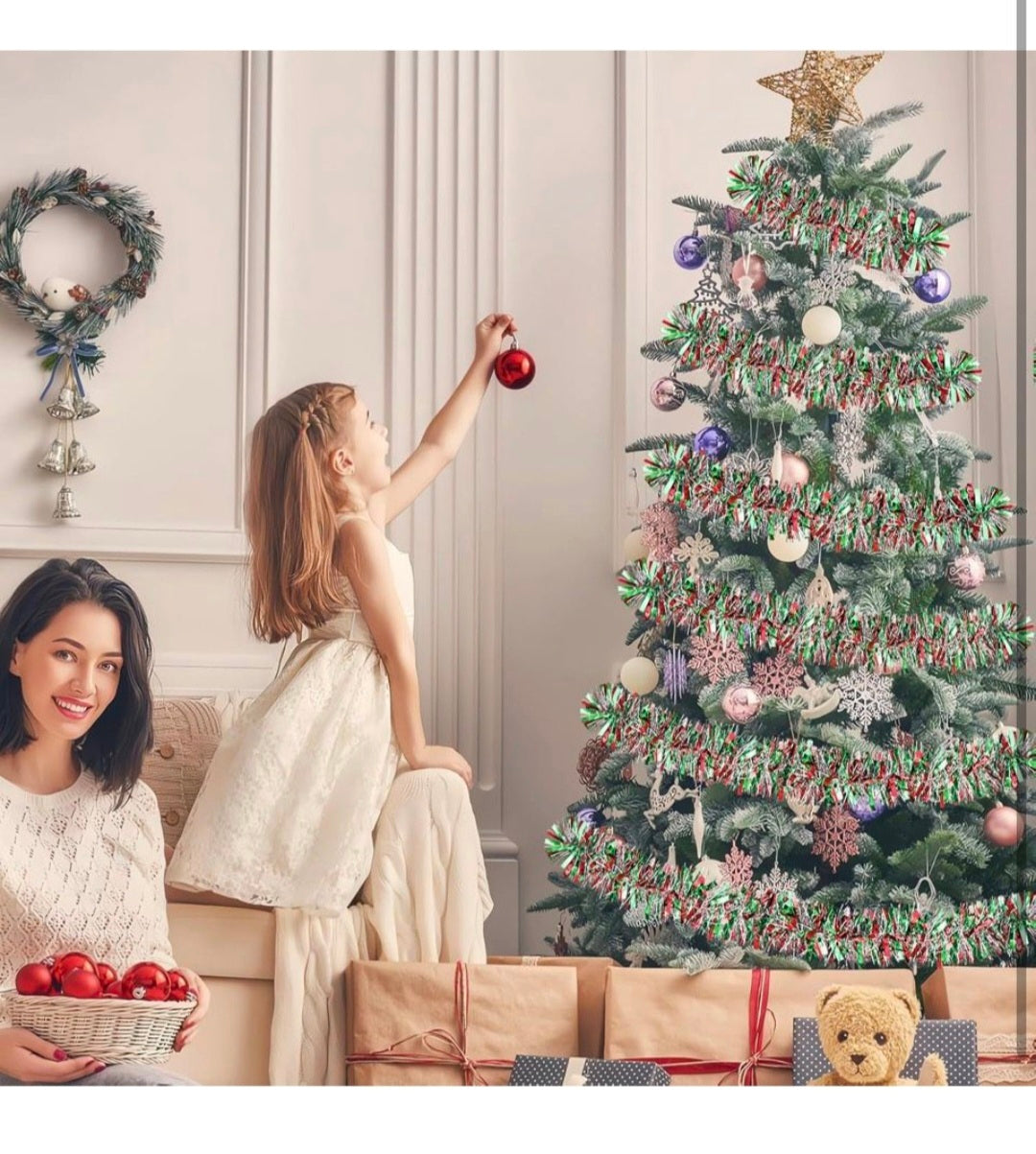 【Christmas Tinsel Garlands】The Christmas tinsel garland size 50 ft (L)X 3.54 inches (W),enough for your Christmas party decorations, you can combine different colors together to add a bright and Christmas atmosphere to your holiday decorations.