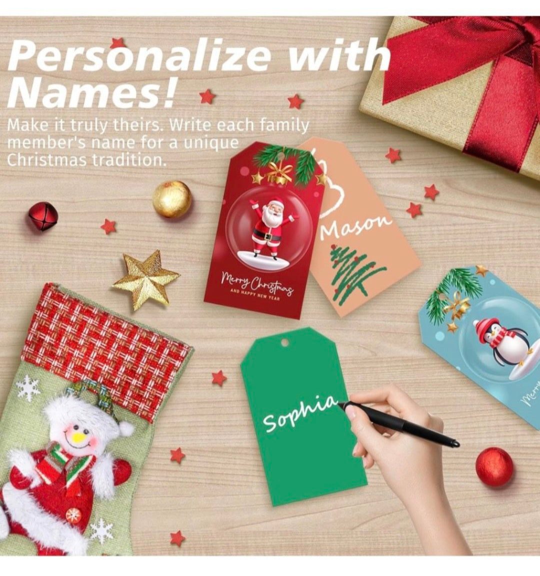 Write Your Family’s Own Holiday Story-Add a personal touch! Includes 6 blank gift tags ready for your handwritten names or special messages like “For my little elf, Alex.” Watch your custom wishes sway gently, bringing warmth and life to your Christmas display.