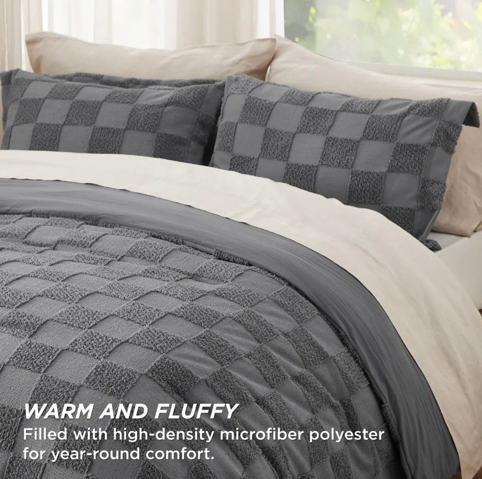 Bedsure Boho Tufted Checkered Farmhouse Comforter Set, 230GSM
