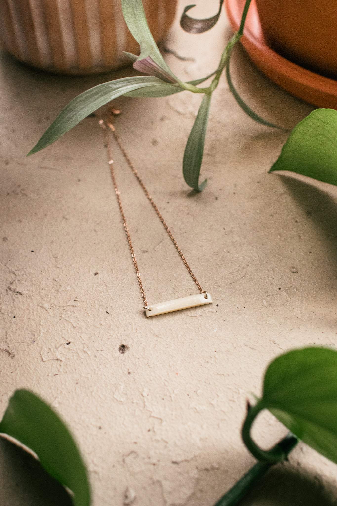 Meet Betty! Available with silver or gold chain in both bone (seen here) or horn. Matching earrings available.
