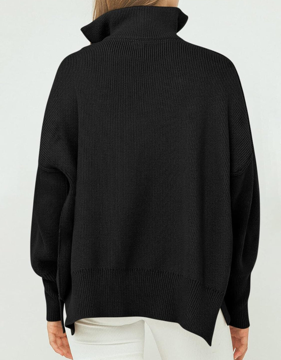 Design - 1/4 zipper,collar,high neck,long sleeve,drop shoulder,ribbed knit cuff,oversized fit,sweatshirt sweater