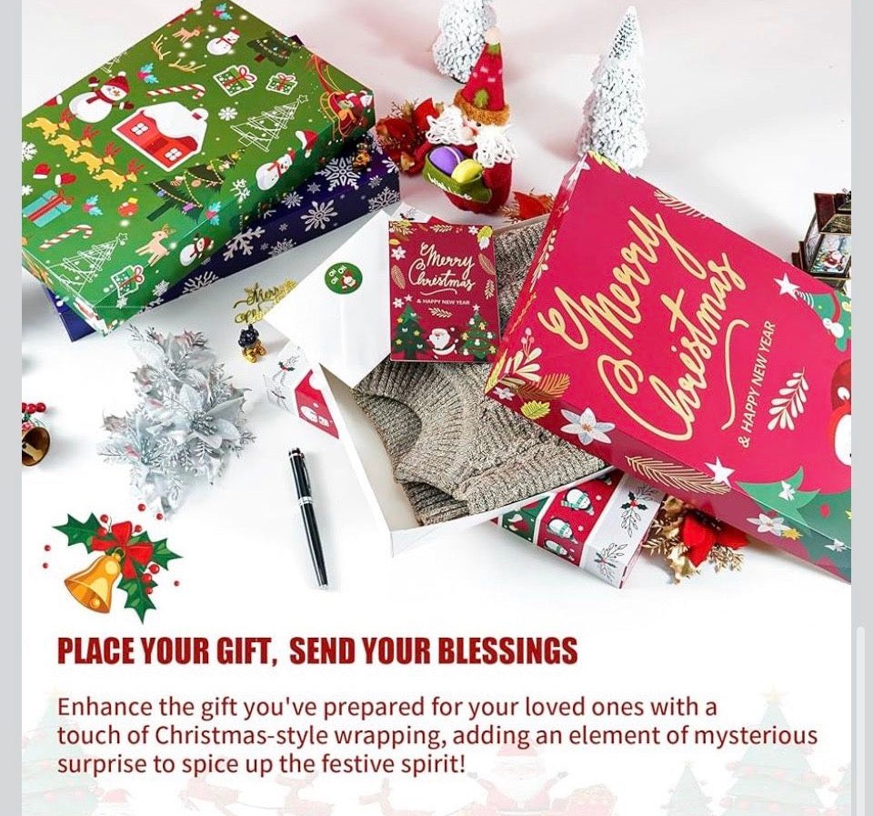 🎄【Widely Use】 These Christmas gift boxes for a variety of presents, perfect for shirts, blouses, christmas gifts, wine bottles, stocking stuffers party favors and scarfs or anything you wish to put in.