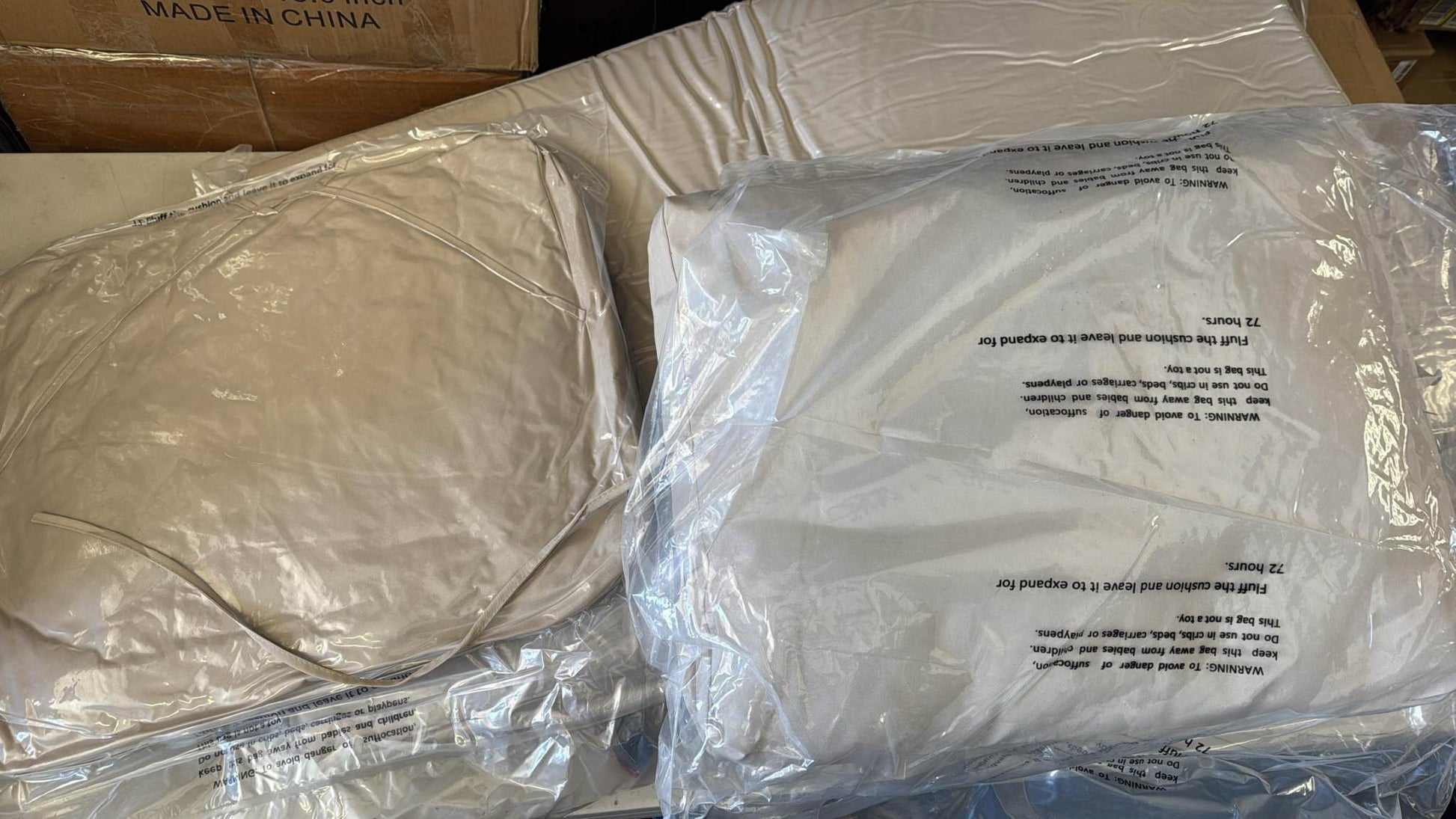 TIPS: The cushion insert and covers are packaged separately. Simply place the insert into the covers before use. As the outdoor cushions foam are vacuum-compressed for shipping, they may appear slightly wrinkled or flat when first opened. Please allow 24–48 hours for them to fully expand and return to their original shape (a bit longer may be needed in colder weather).
