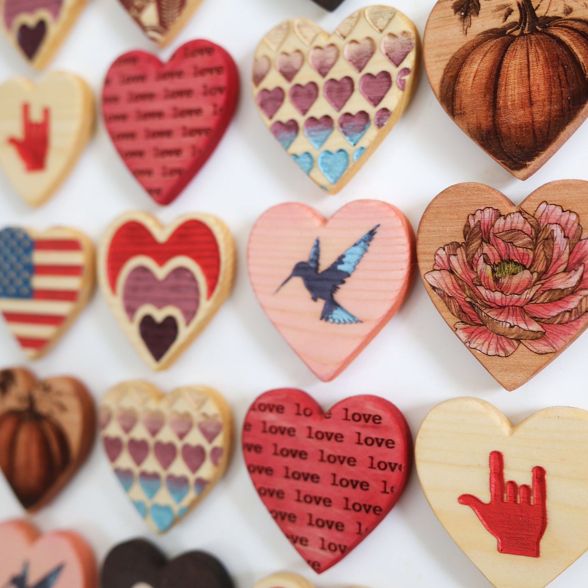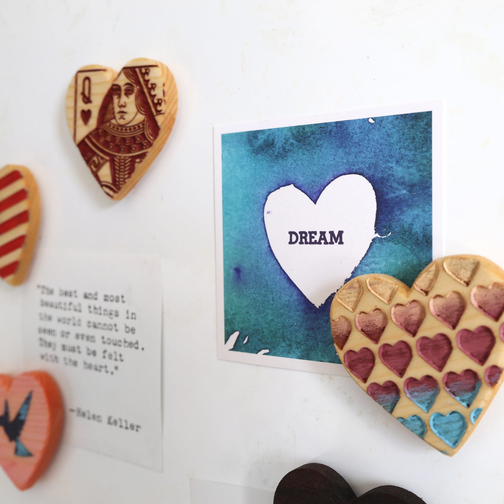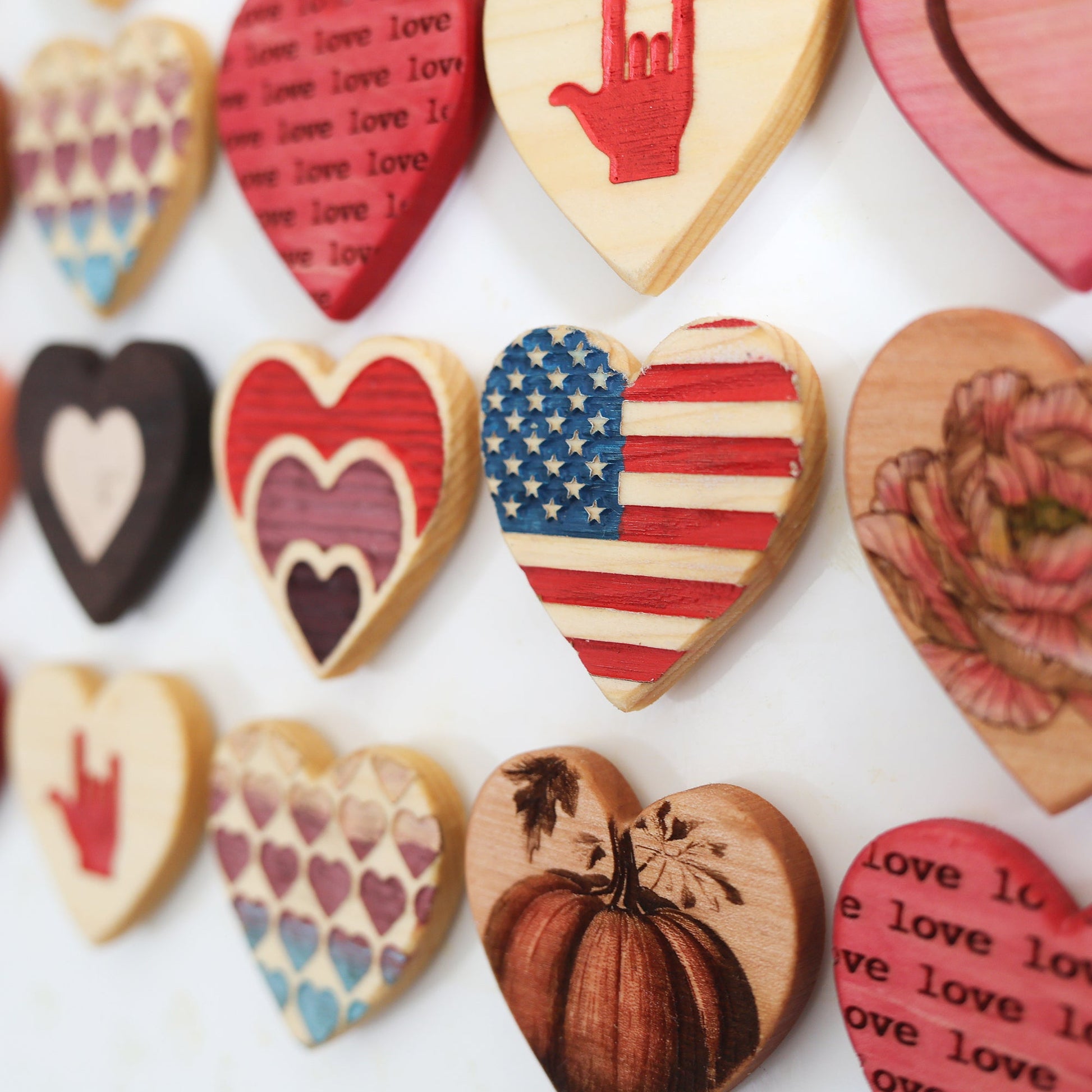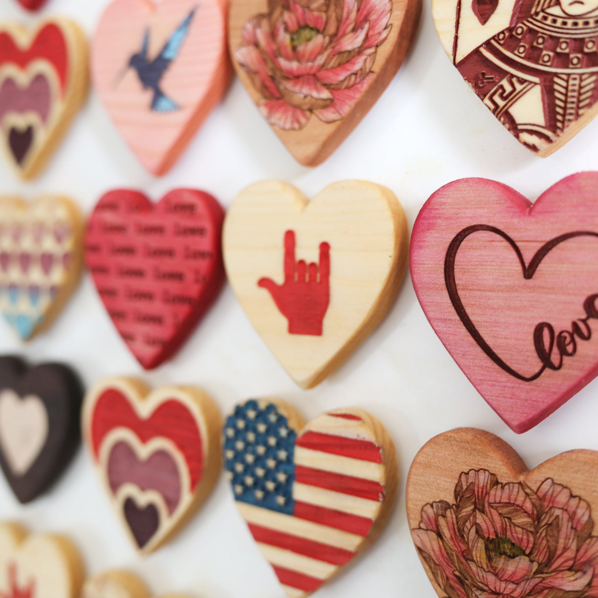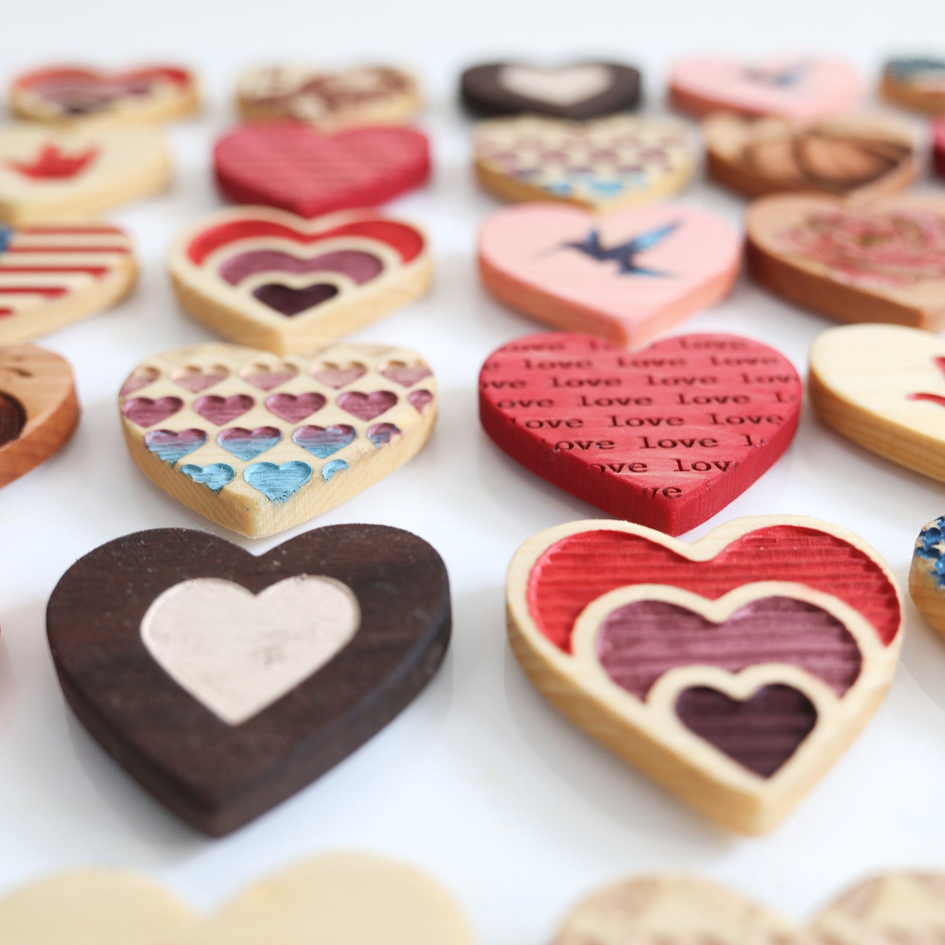 Made with reclaimed wood and thoughtfully engraved, each heart is fitted with a strong, rare-earth magnet, making them perfect for fridges, lockers, office boards, or anywhere a little love is needed.