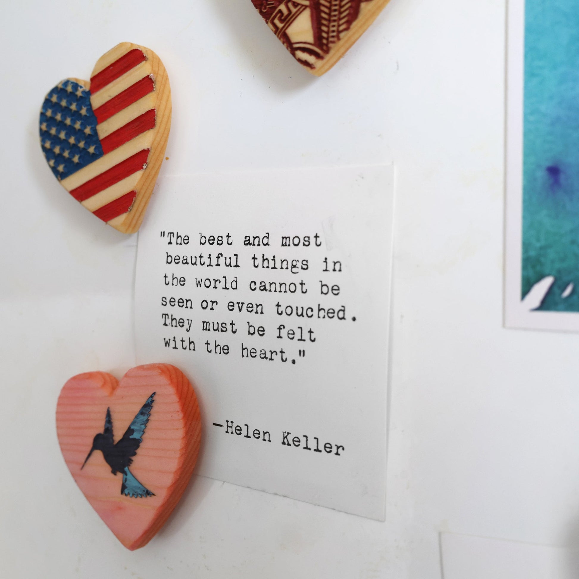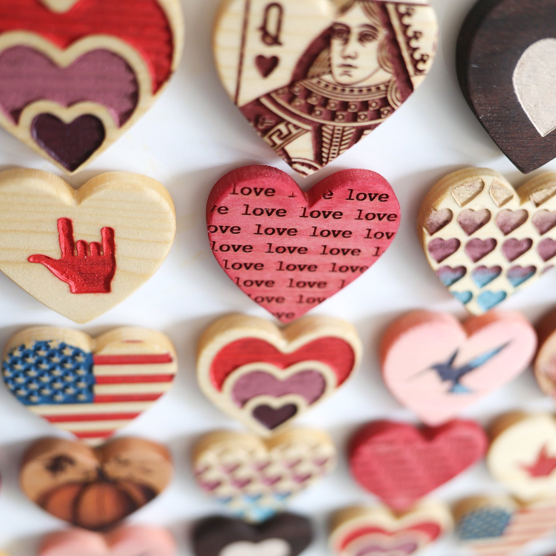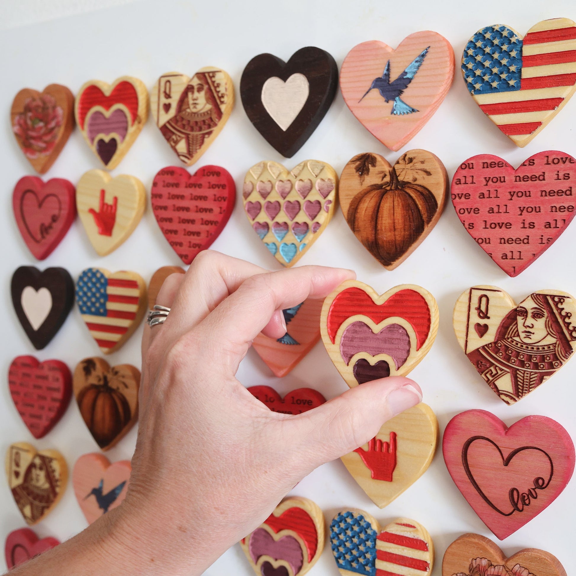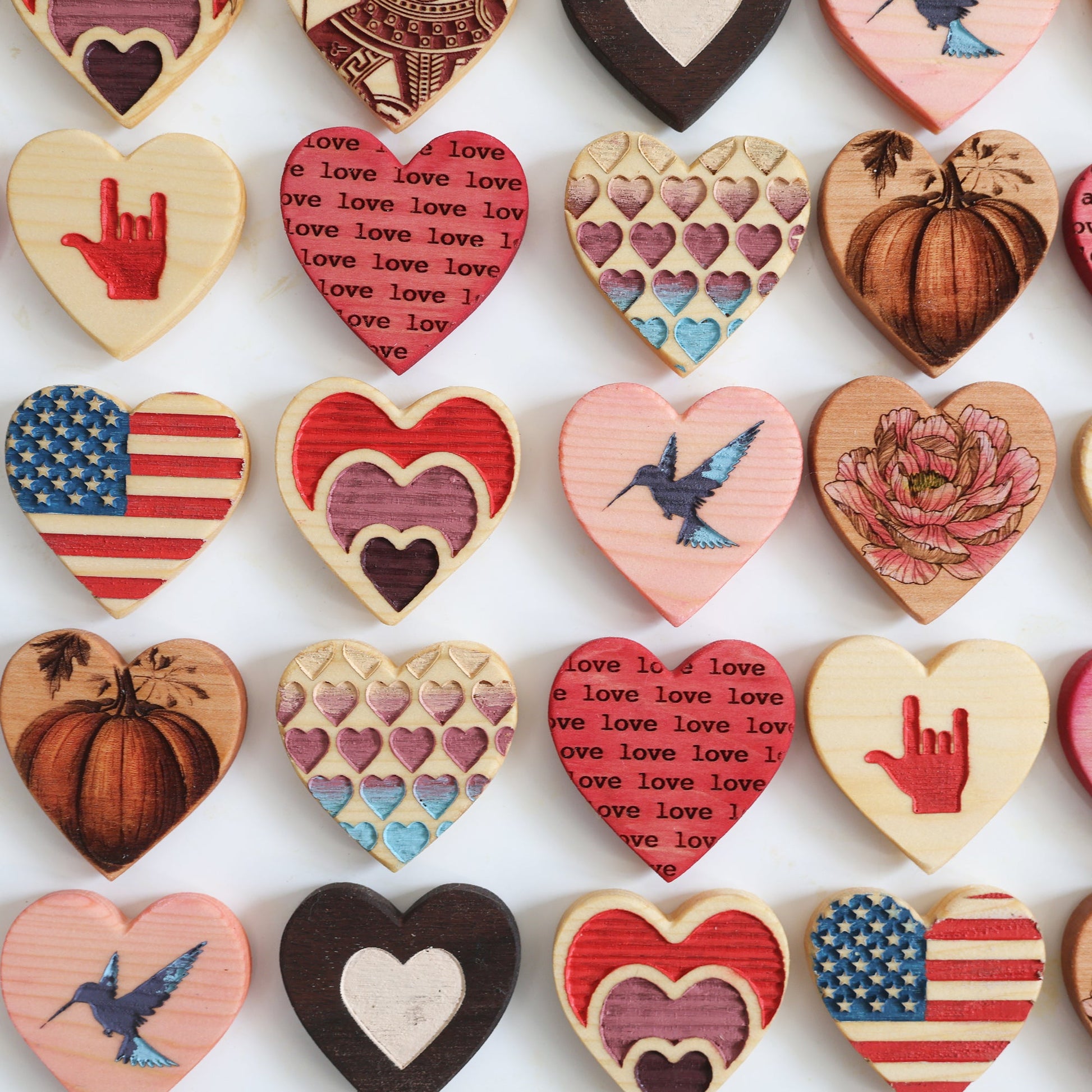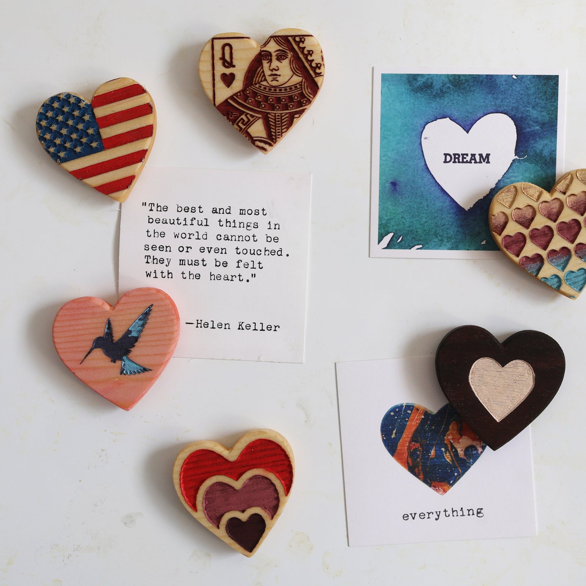 Made with reclaimed wood and thoughtfully engraved, each heart is fitted with a strong, rare-earth magnet, making them perfect for fridges, lockers, office boards, or anywhere a little love is needed.