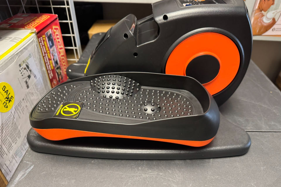 Portable & Compact: At only 9.5 inches high, the electric leg exerciser is lightweight and compact in design, making it easier to store under tables for more space saving. The built-in handle design makes it easy to lift and move products.