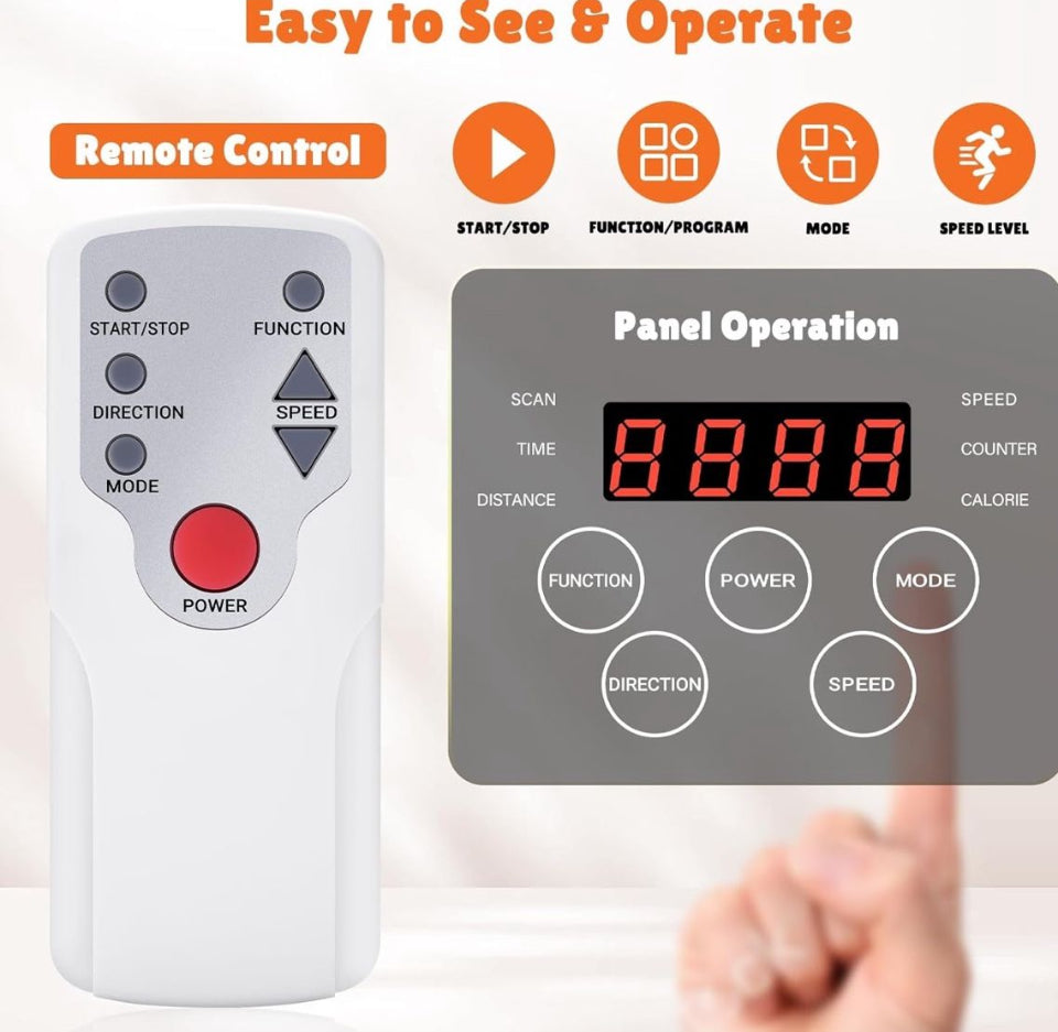 2 in 1 Operation & Automatic and Manual Mode: The mini ellipse training machine panel can be operated directly and has a remote control to adjust the mode. The elliptical home equipment has three automatic modes and five manual modes. The LCD panel allows you to view real-time data and mode changes, allowing you to maintain and view leg movement data such as speed, time, calories, laps, and distance while reading, watching TV, and working.