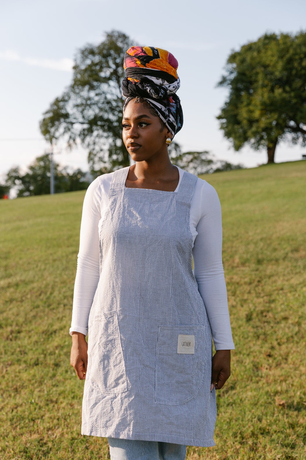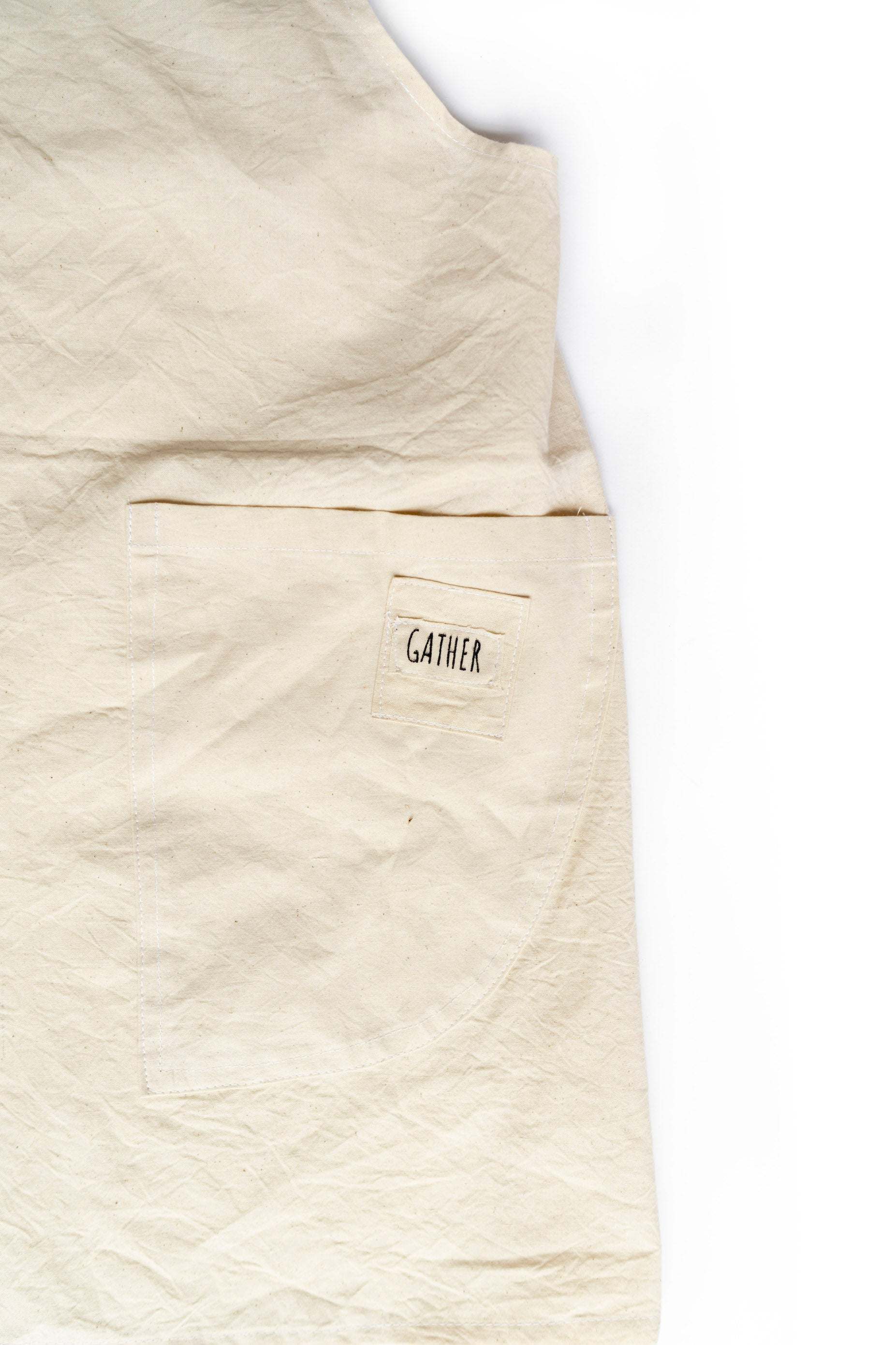 The Harvest Apron is our apron design that was months in the making. The cross straps make it simple to pull over the head and fit comfortably on most body sizes. It simply adjusts itself. This apron has pockets with generous space and is perfect for filling with tools, kitchen utensils, paintbrushes, or fruit from the garden. “Gather” your tools to make something new or gather your ingredients so you can gather your people around the table! This is an innovative & roomy one-size-fits-most design!