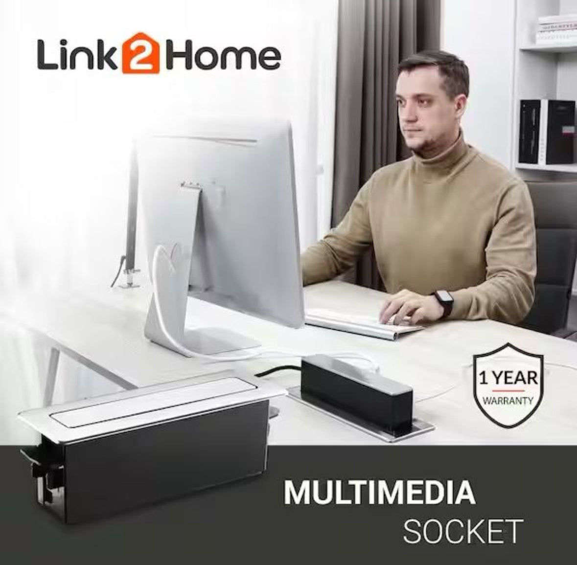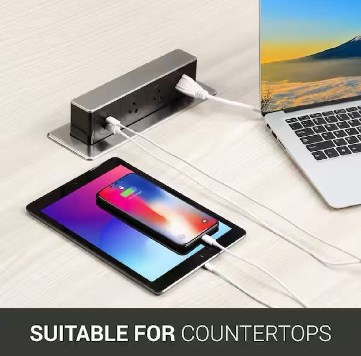 Small in size, big on power. Unlike most retractable sockets, which require quite a lot of space beneath the surface, this 1 fits 3 grounded outlets and 2 USB ports (type-C included) into an ultra-compact design - a clever way of saving space both over and under your counters. Save more space, while getting easier access to the power outlet with the new Link2Home Space Saver Pop Up Outlet with USB. A pop-up solution to the messy cables and inconvenient when trying to connect your devices. Perfect for stationery accessories like night lamps, computers and different conference devices, leaving more space for temporary devices like laptops, tablets and mobile phones. Power and charge up to 5 devices (3 AC Outlets 15 Amp with 2 USB Port 3.0 Amp Fast Charge) simultaneously right from your desk, kitchen counter or workshop.