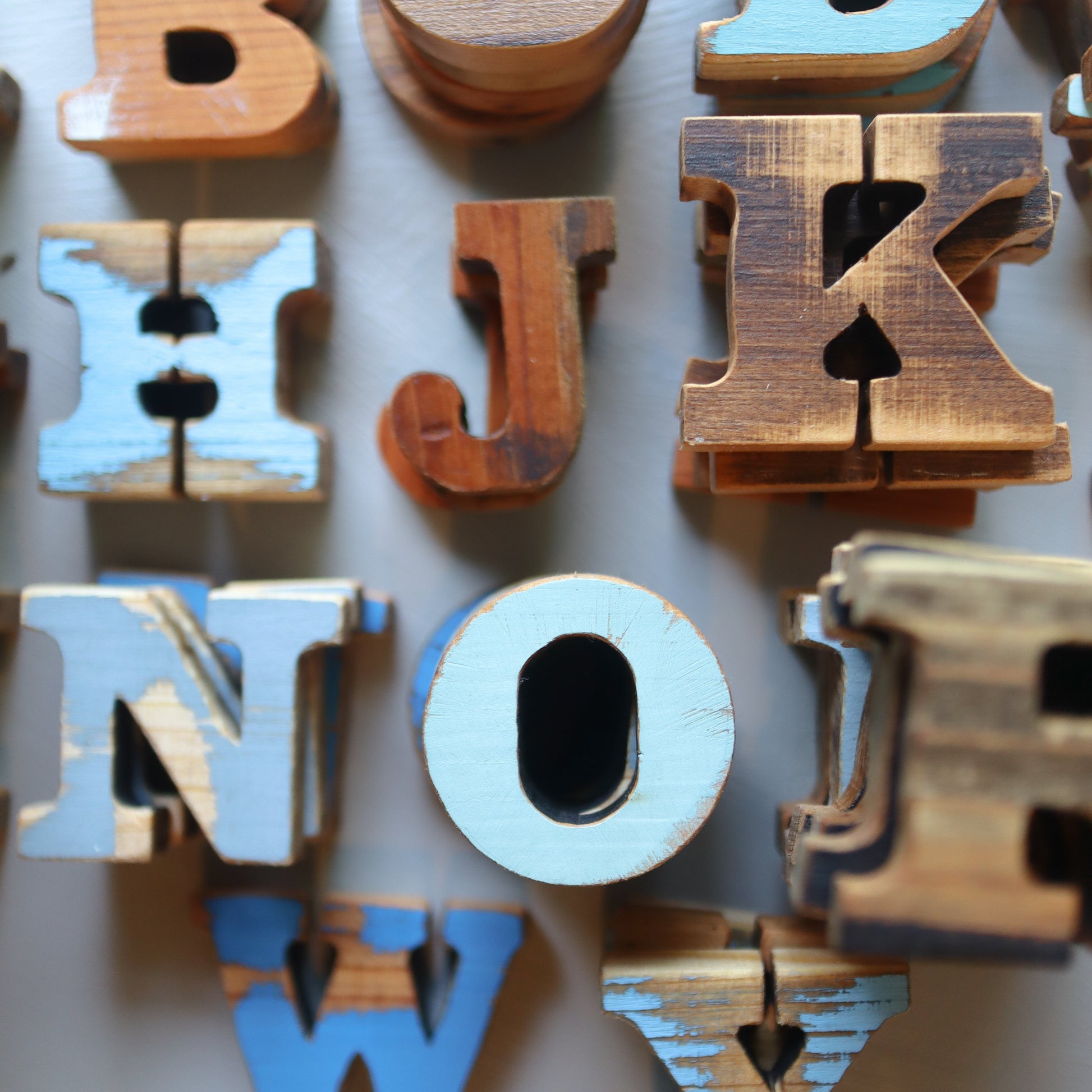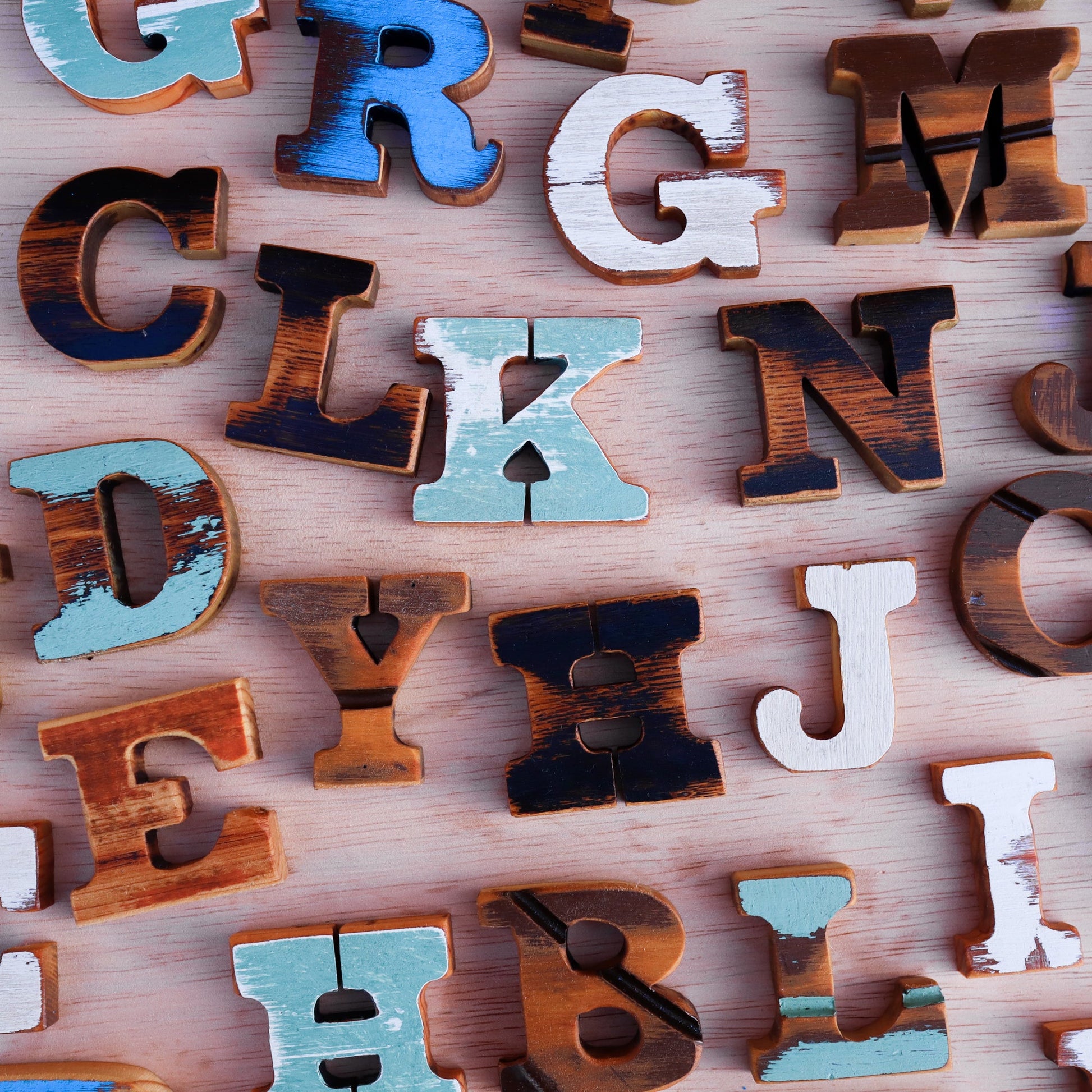 Little Wooden Letters We make these letters with the same beautiful reclaimed woods as our hearts and pocket crosses! These freestanding letters are imperfect, rustic, and full of one-of-a-kind character.