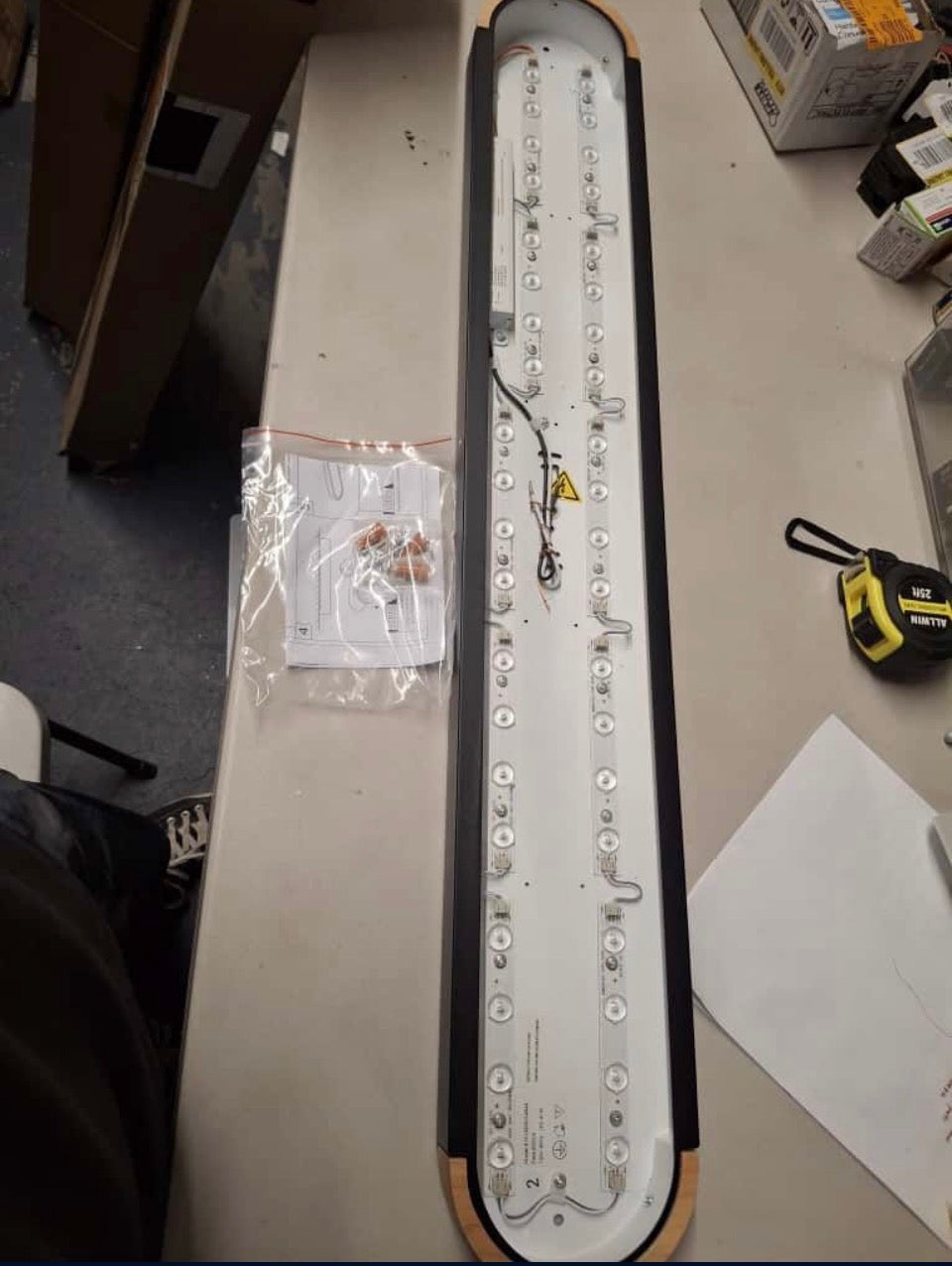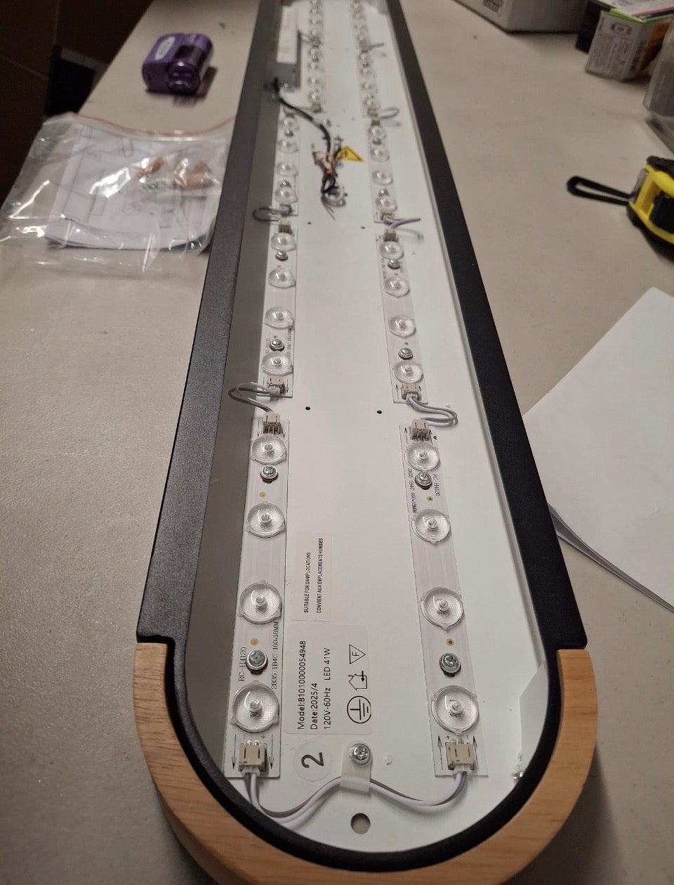 Elevate your living space with the minimalist modern 38 in. L LED flush mount ceiling lights from HUOKU. This long light fixture features a sleek metal, rounded oak trim and durable construction, making it a perfect addition to any room. The integrated LED provides a bright 6000K color temperature, ideal for serving as your main source of lighting. ETL certified for safety, this versatile minimalist ceiling light is suitable for bathrooms, kitchens, walk-in closets, laundry rooms and living rooms. Upgrade your home with this contemporary and functional Flush Mount LED Lighting solution.
