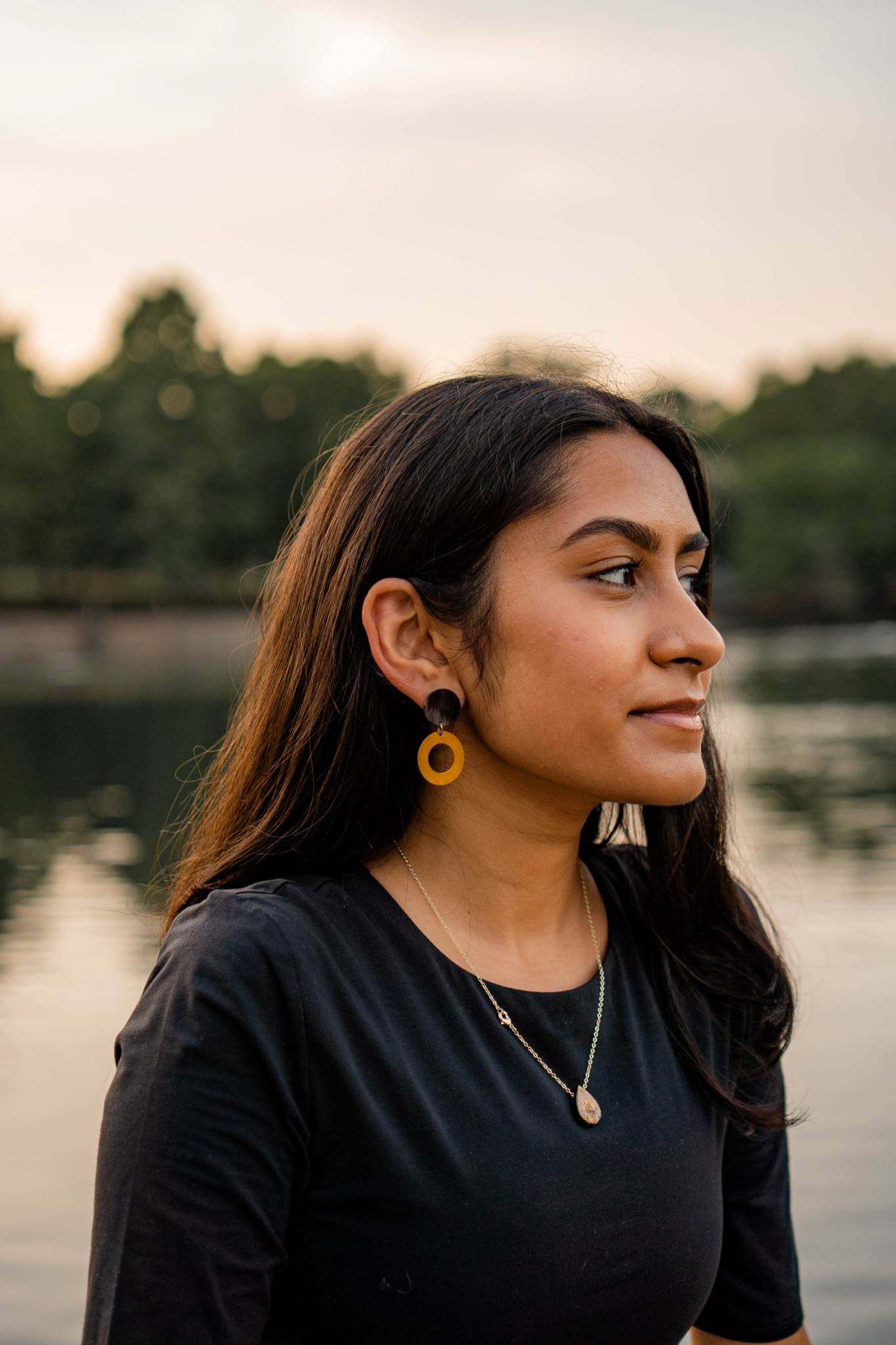 A classic Post Earring. The natural horn round base connects to a brass circle. This fresh look can't be beat! You can wear these with everything. We mean EVERYTHING!