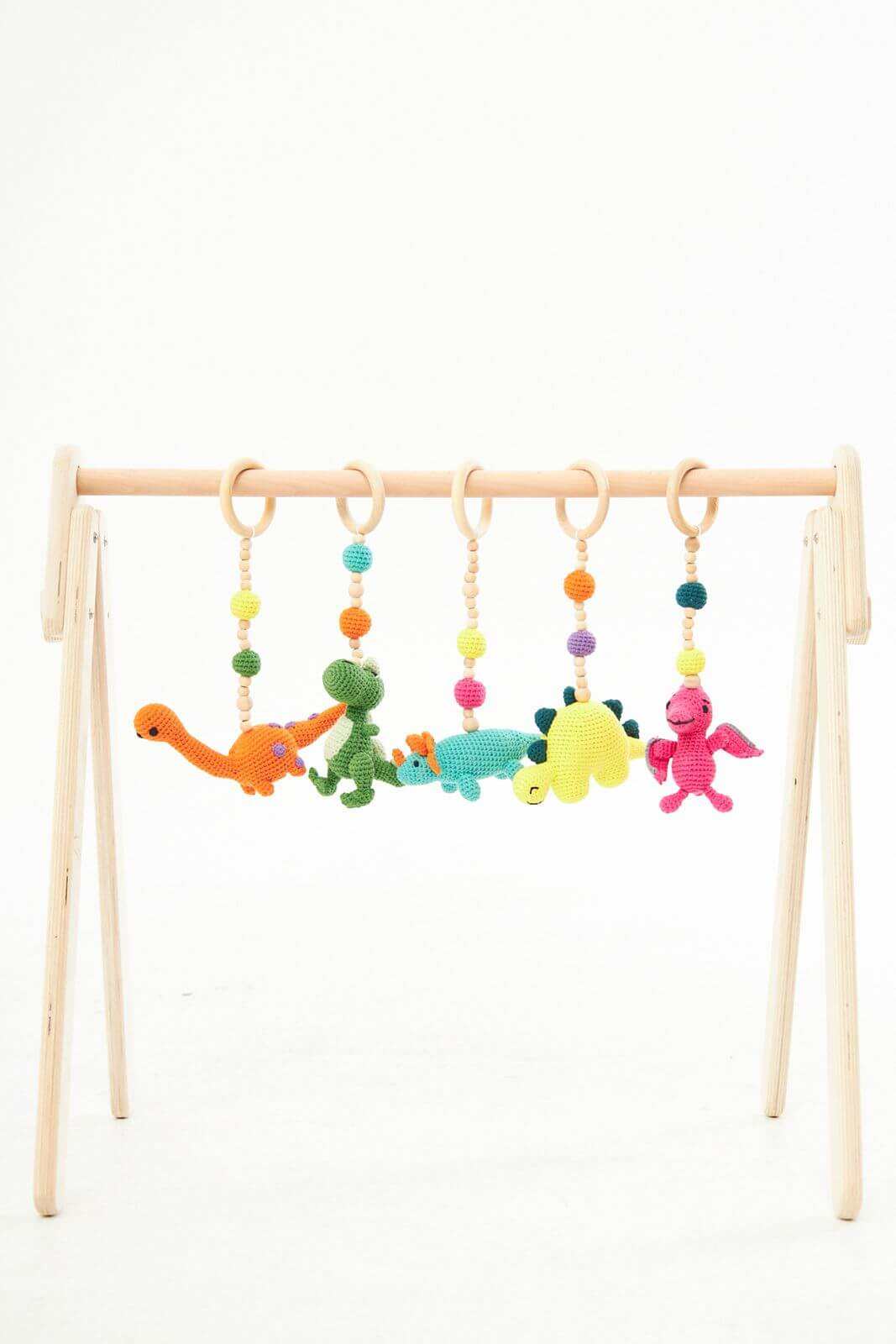 - Stimulate Senses: Our baby gym includes 5 handmade crochet hanging toys, perfect for encouraging your baby to reach and grab, enhancing hand-eye coordination and gross motor skills.