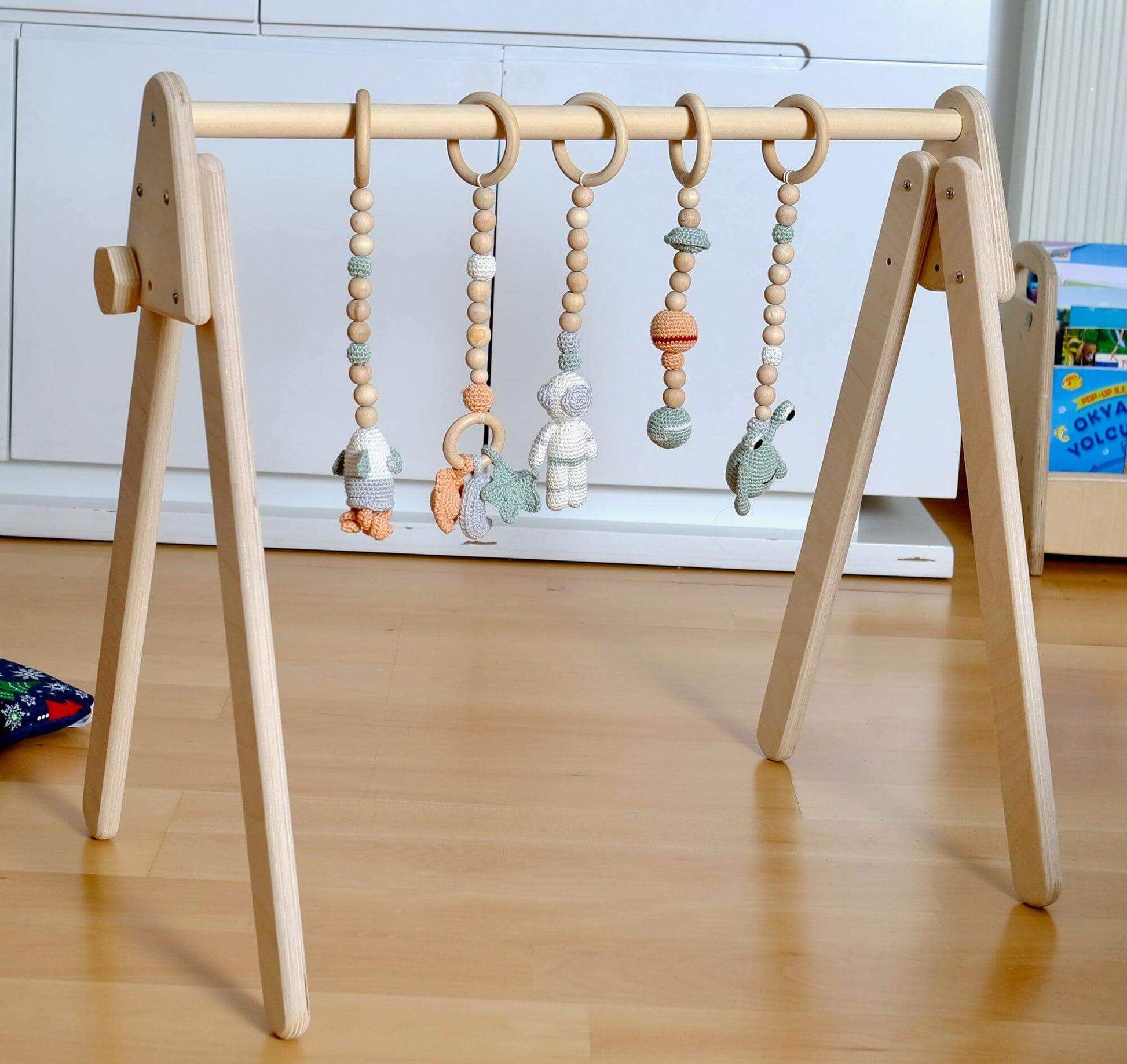 Montessori Baby Gym & Hanging Toys Set | Wooden Play Gym for Babies