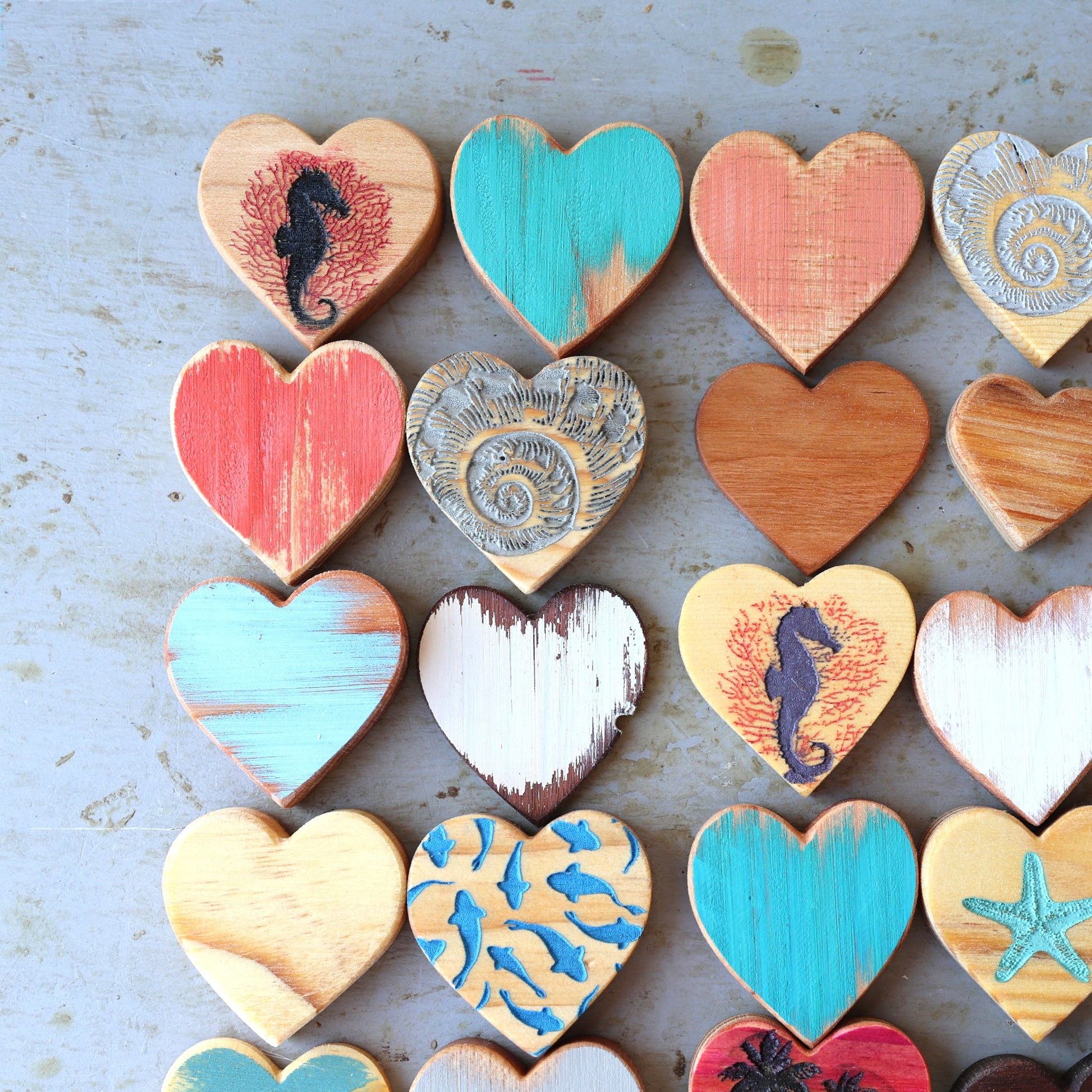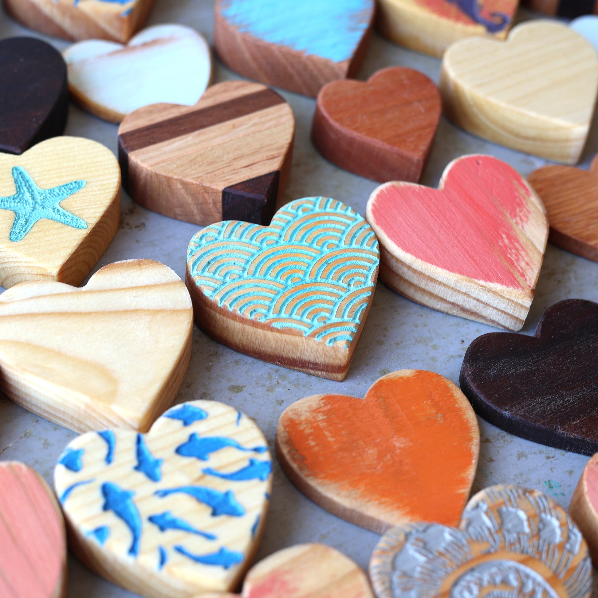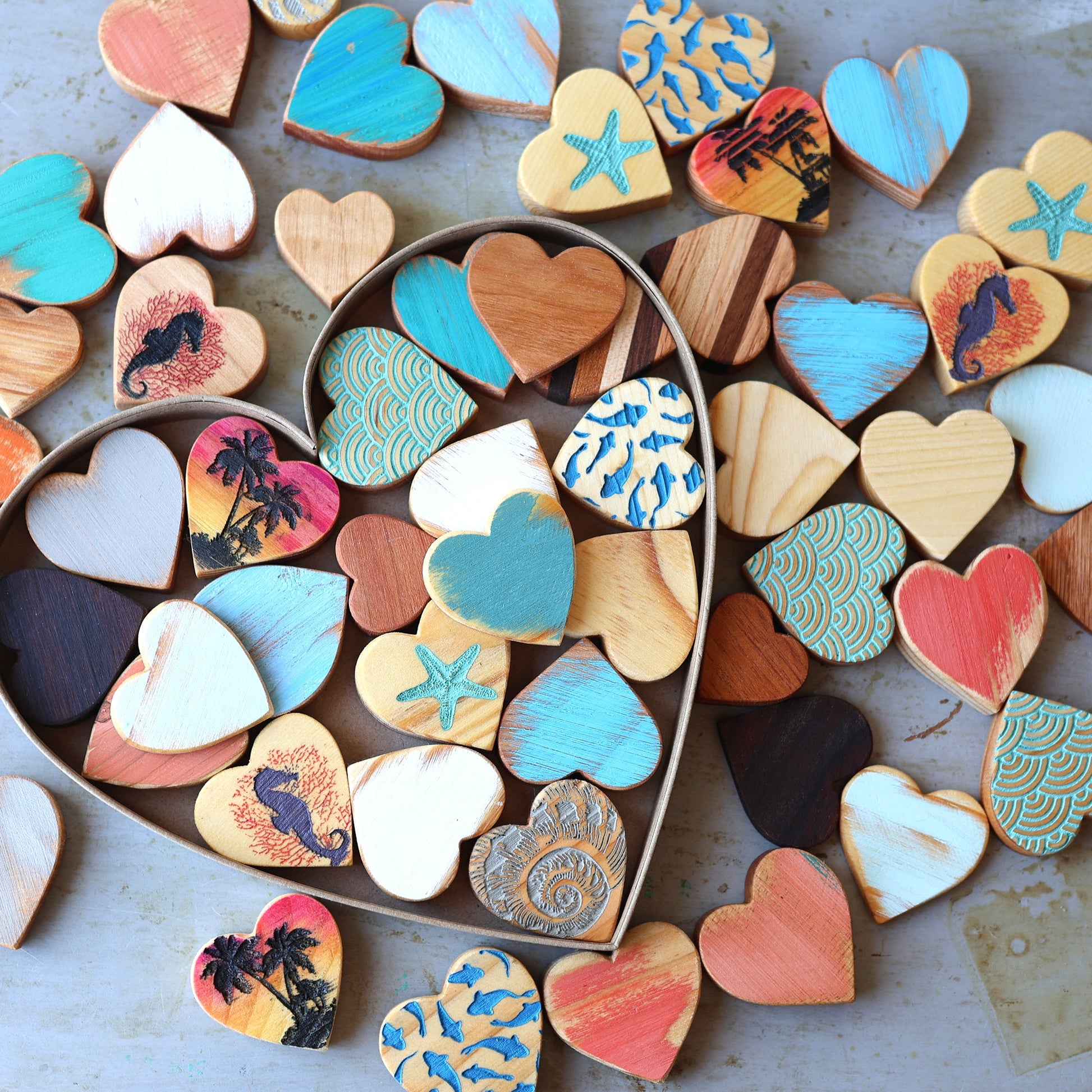Our Widest Assortment of Hearts. Inside, you’ll find a mixture of our popular hearts, including striped, natural, painted, distressed, thin, imperfect, and engraved hearts.