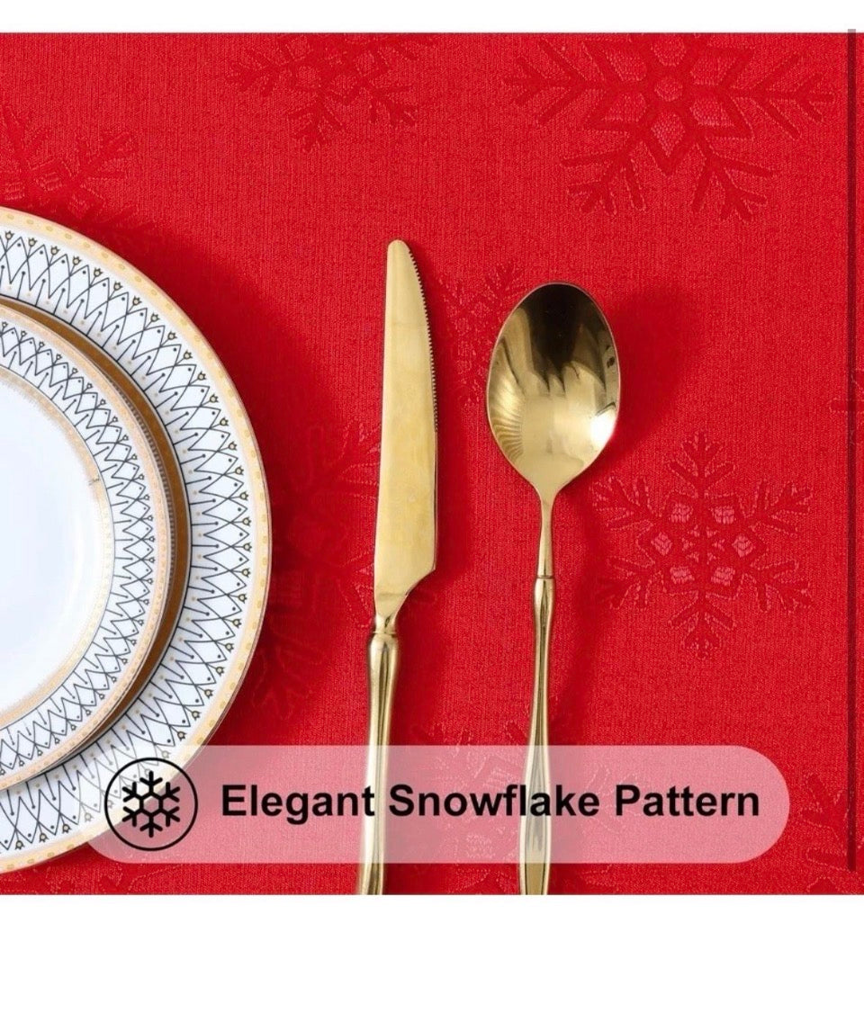 [Exquisite Christmas Decor] Featuring a jacquard damask design with snowflake patterns, this red tablecloth is a must-have for your holiday-themed gatherings.