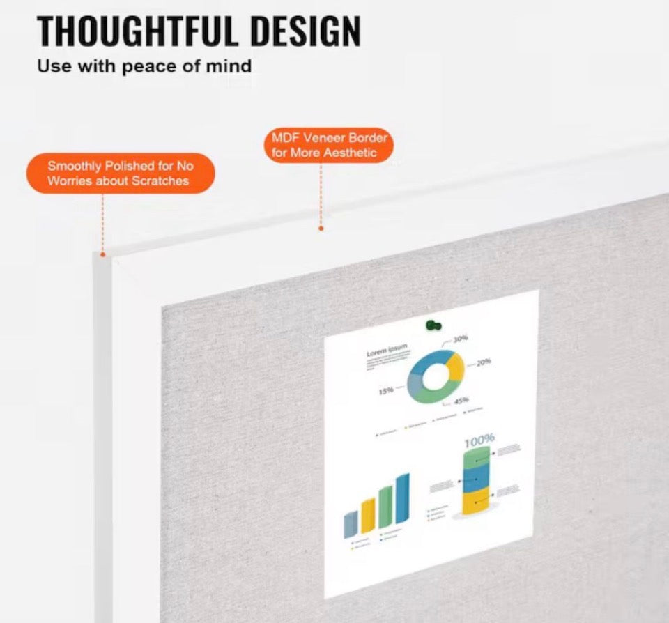 Upgraded linen surface: our notice board features a white polyester-cotton surface with a 7 mm thick fiberboard core, it's designed to resist unsightly pin holes even with long-term use, the surface is reinforced with glue and press plates, preventing bulging and ensuring secure and stable pinning