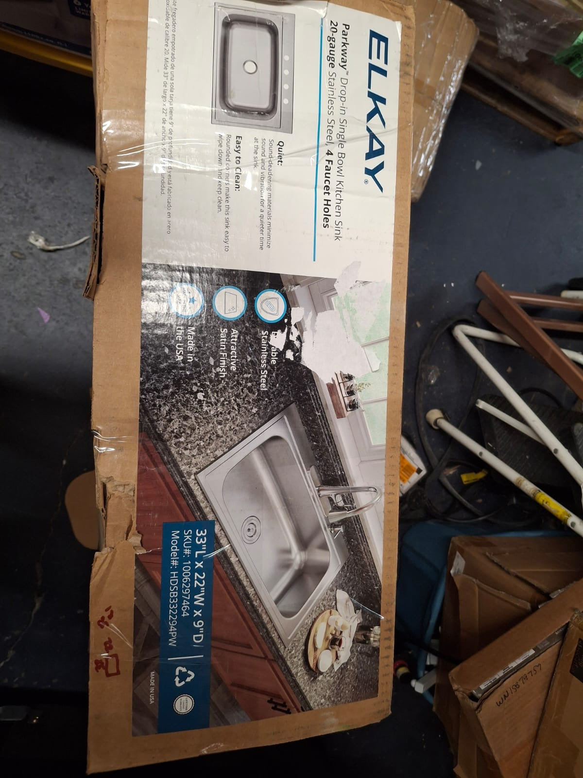 Open Box Elkay Parkway 33 in. Drop-in Single Bowl 20-Gauge Stainless Steel Kitchen Sink Only