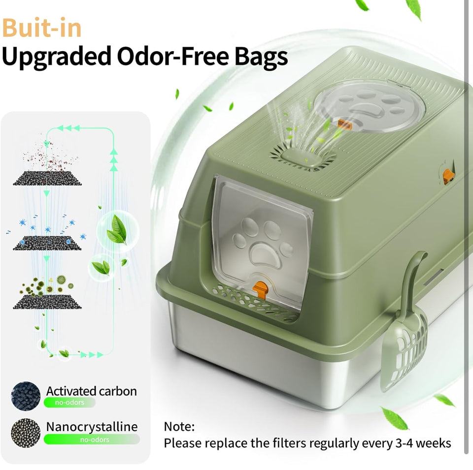 【Odor-Free】Eosarcu enclosed cat litter boxes had upgraded structure, features carbon filters to absorb odor effectively, ensuring an fresh and comfortable space for cats.