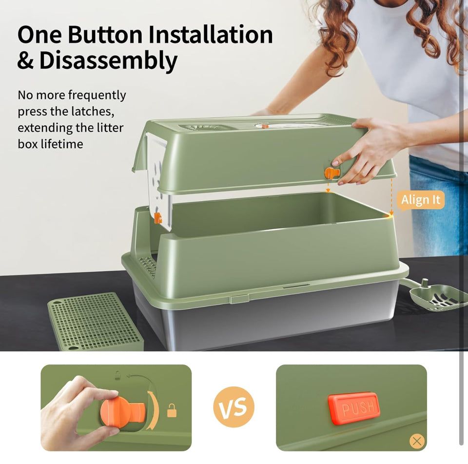 【Anti-Leakage Urine】Eosarcu stainless steel top entry cat litter box with high sides removable lid, its unparalleled containment effectively preventing urine leakage and odors from spreading out. also you can choose two modes (semi-enclosed or enclosed) based on your pets preference.