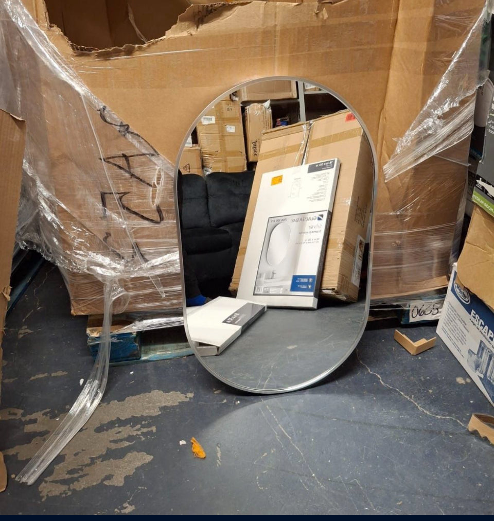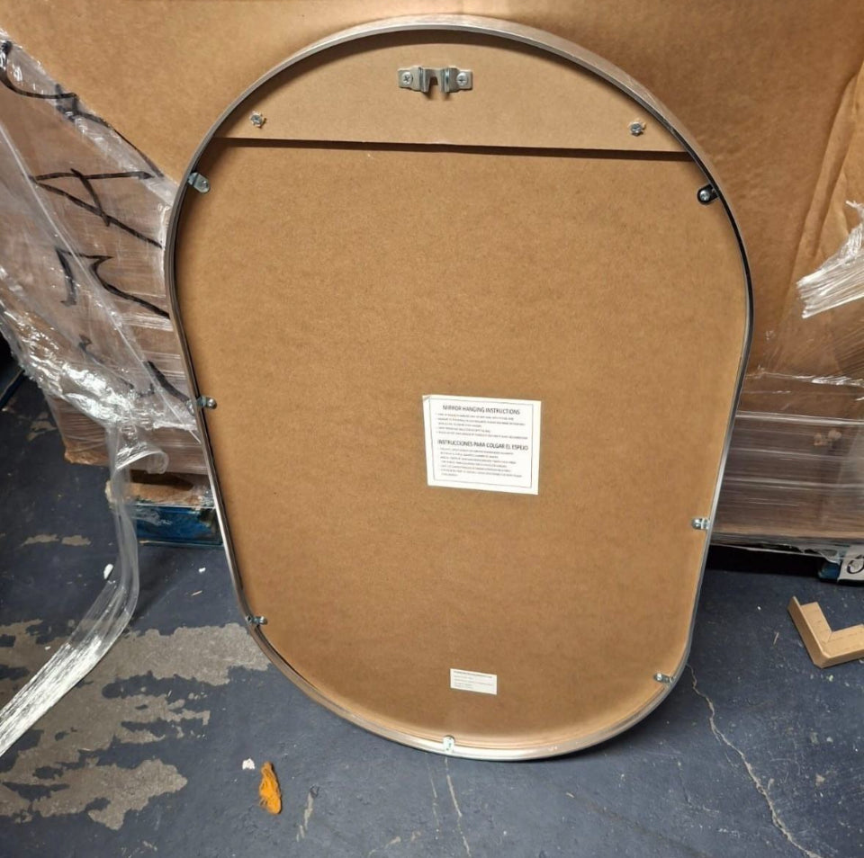 Open Box Glacier Bay 18 in. W x 30 in. H Aluminum Oval Shape Framed Wall Bathroom Vanity Mirror in Silver (Screws Not Included)
