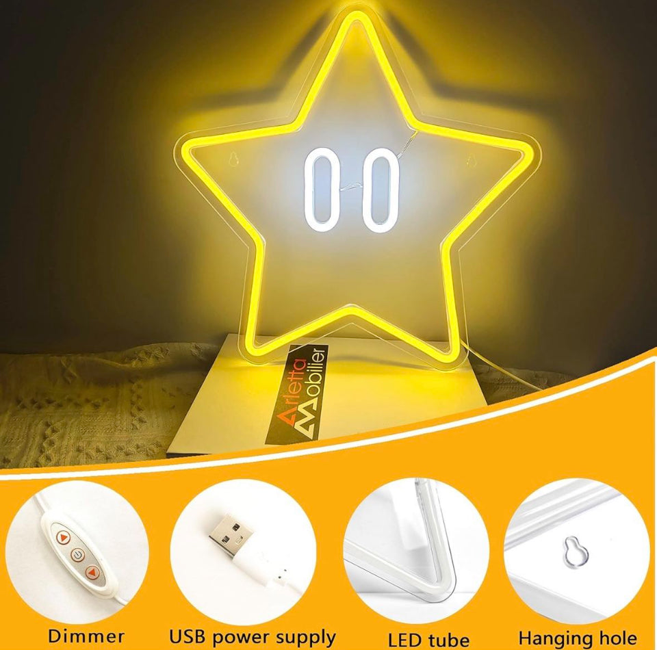 Open Box JIARODEY Star Neon Sign, Gaming Neon Sign for Game Room Decor, Man Cave, Kids Room,Super Star Gaming Wall Decor Gamer Gifts for Boys, Kids