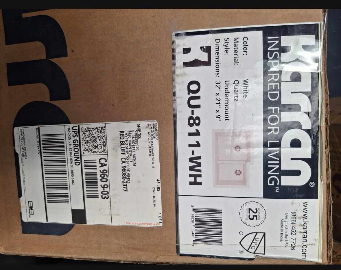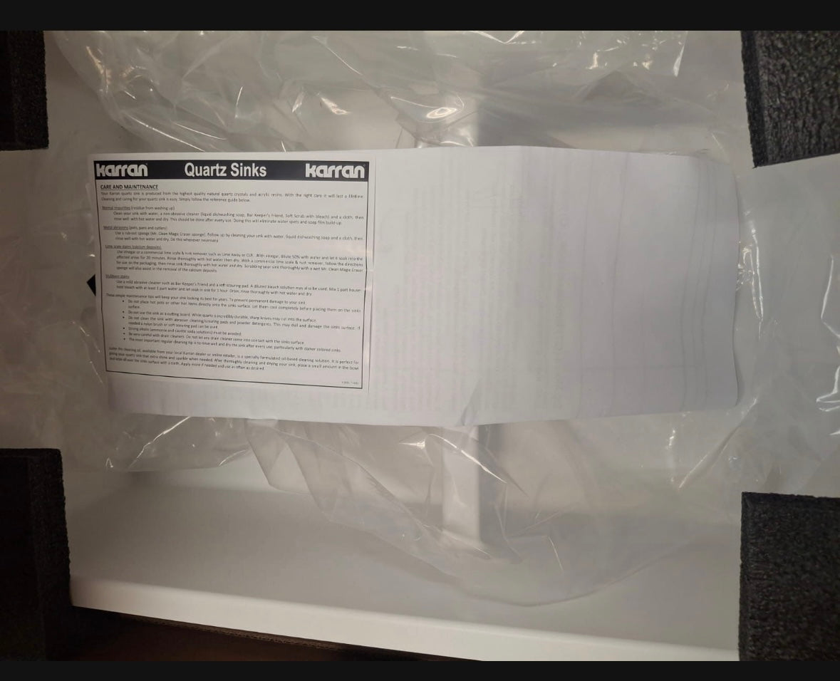 This modern design with crisp, linear styling is sure to be the focal point in your kitchen. Its quartz composite material gives it outstanding durability and will provide years of trouble-free use. This undermount design is available in a choice of 6 elegant colors to compliment any decor. Features and Benefits: Designed for installation into solid surface, granite and quartz countertops Manufactured from 80% natural quartz crystals and pure acrylic resin Heat resistant up to 535°F and can withstand rapid temperature changes from cold and hot water Durable quartz material is non-porous, preventing the spread of germs and bacteria Smooth, non-porous material means food residue won't stick or stain the sinks surface Extremely stain, scratch, abrasion and impact resistant Quartz material absorbs vibration and minimizes noise when in use Natural quartz combined with pure acrylic resins provides deep, rich colors with a choice of 6 to choose from, and UV stabilization to keep those colors looking like new for years Regular cleaning is simple with just a cloth and soapy water Rear drain locations provide more storage room in your cabinet below and 9 in. deep bowls provide plenty of room to accommodate all your cookware.