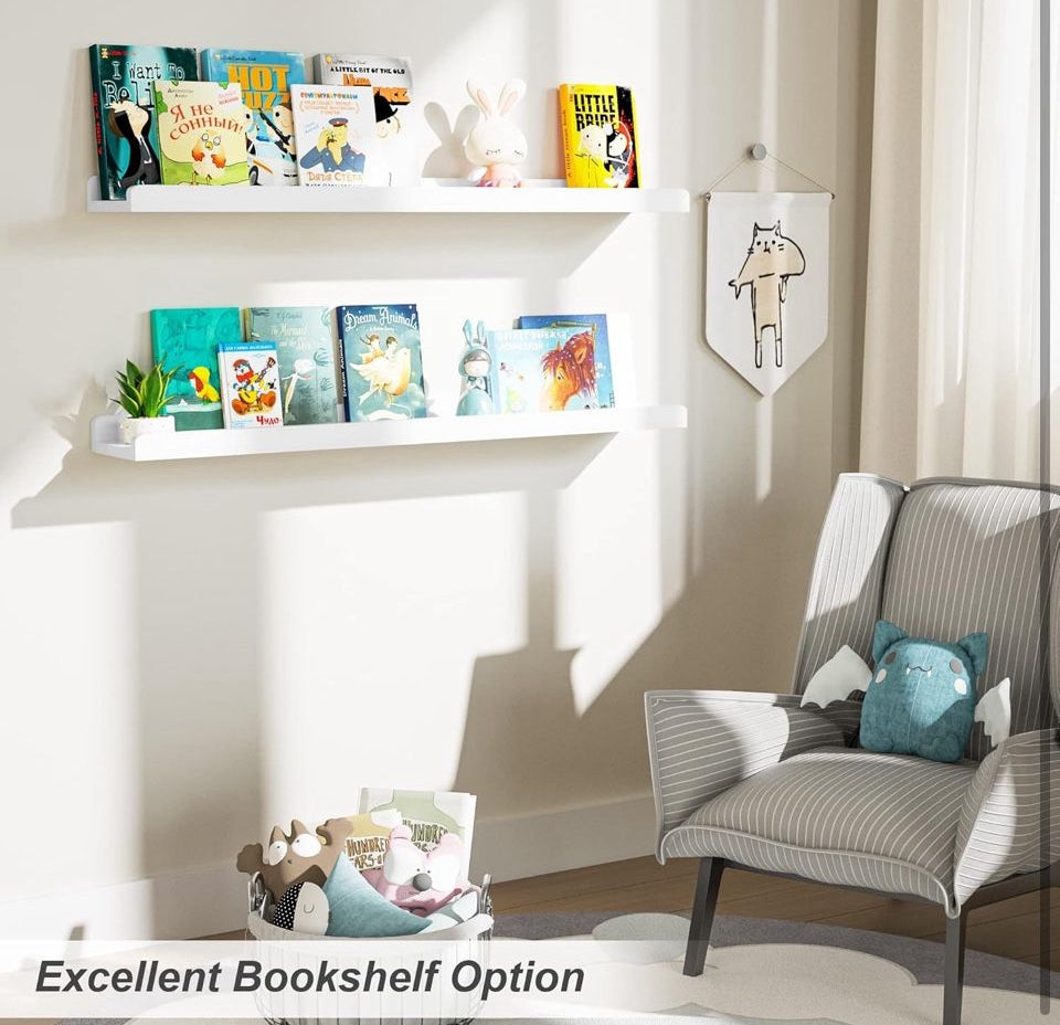 Strong Storage Capacity-2 large 36 inches wooden floating shelves are both longer than others, providing you with more storage space. You can effortlessly add enough functional storage space in your room and keep your space neat and organized with these long wall mounted shelves.