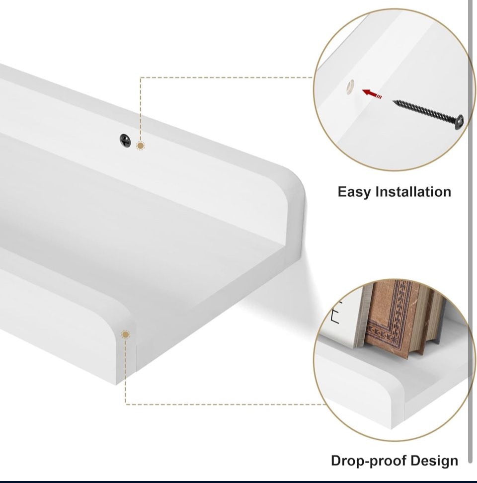 Slide Protective Ledge - The entire 36 inches floating shelves are designed with long protective ledges on the outside. It can effectively prevent items from slipping off the storage shelf and causing damage.
