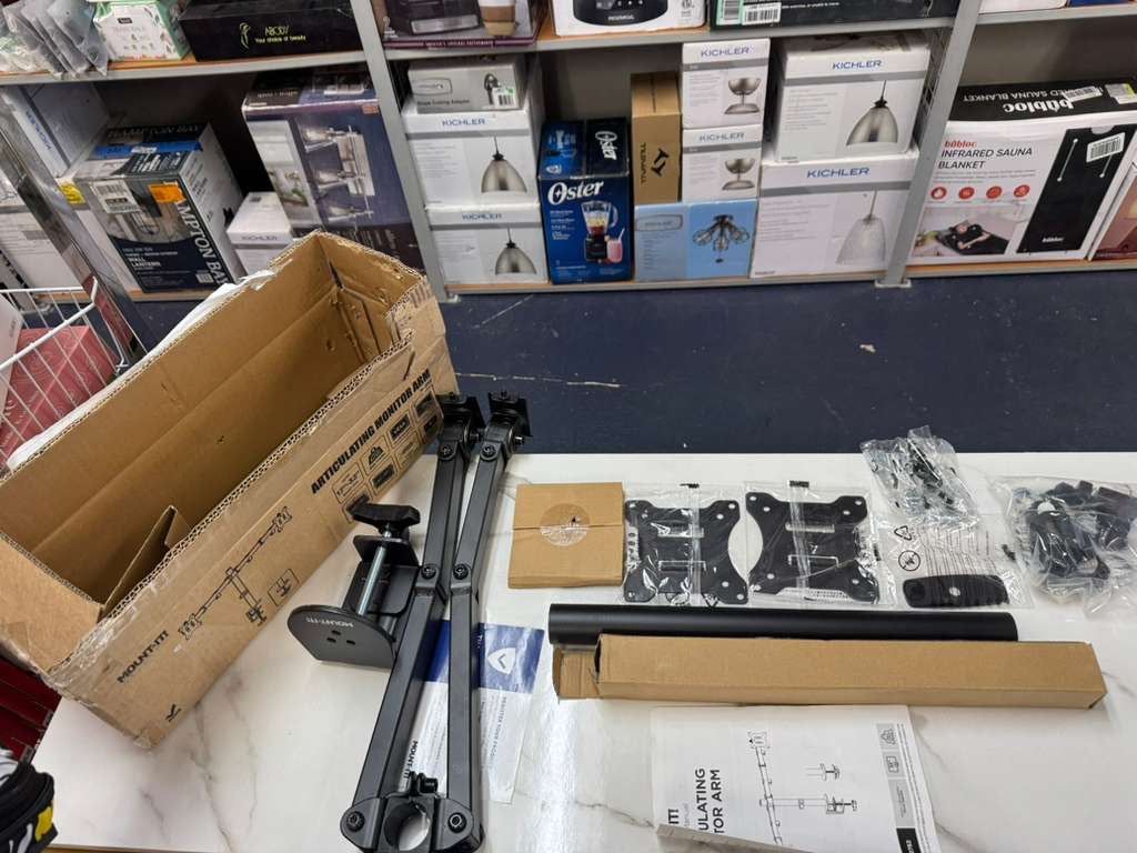 FULLY ADJUSTABLE: The double monitor mount arms can tilt up and down 90 degrees, swivel left and right 180 degrees, raise and lower 17" inches, and each screen can be rotated and placed in portrait or landscape orientation independent of one another.