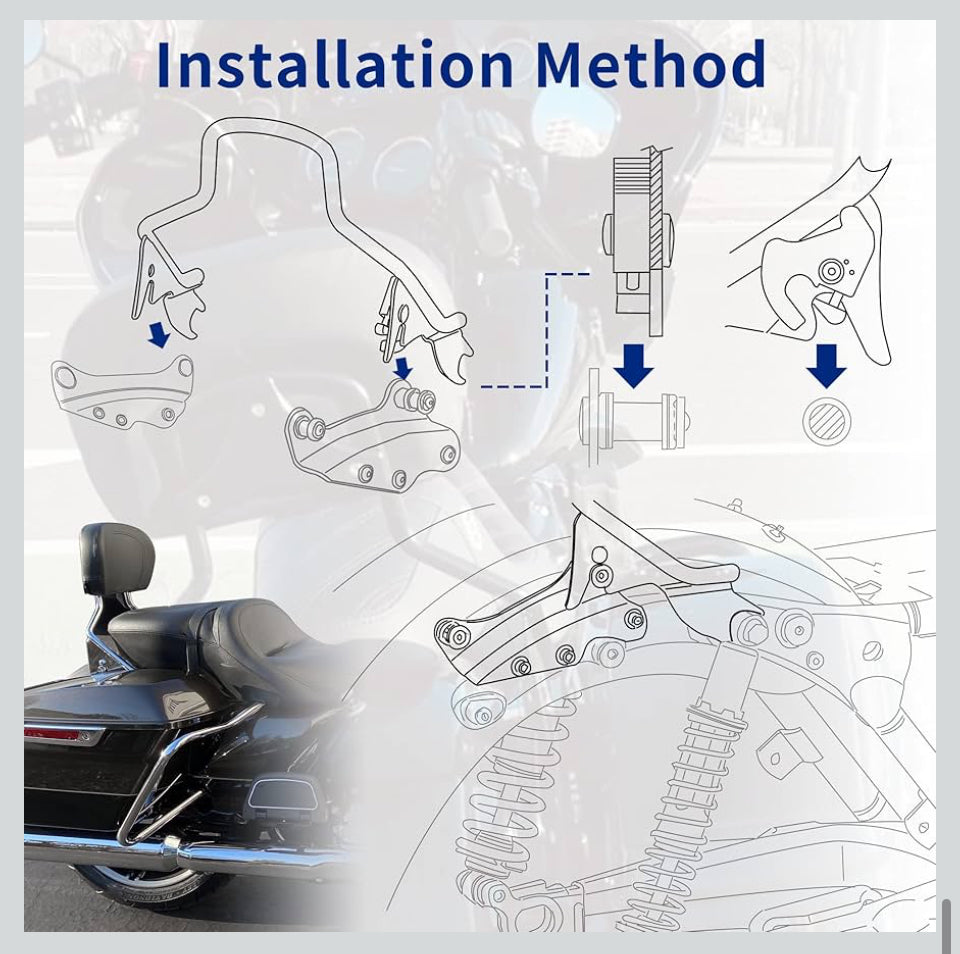 5.【Package】Package include 1 Detachable Backrest Sissy Bar (Luggage Rack Latch Clip included).It is perfect to decorate your motorcycle.Make your motorcycle stand out while fully enjoying every ride.