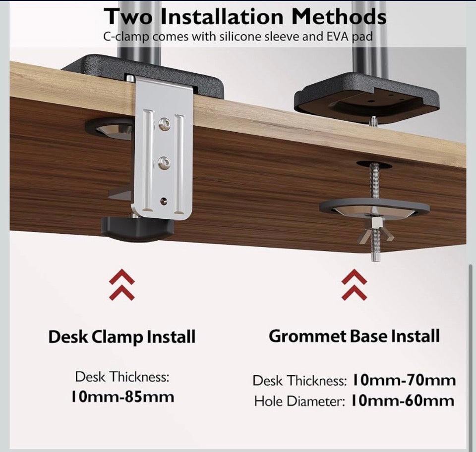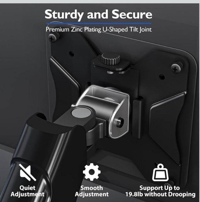 The BONTEC Single Monitor Desk Mount for 13 to 34 Inch Screens is the perfect solution for enhancing your workspace with ergonomic comfort and organization. Ideal for home offices, gaming setups, or professional workspaces, this monitor arm is designed to provide smooth and effortless adjustments, allowing you to find the perfect viewing angle. With its adjustable gas spring arm, you can easily tilt, swivel, and rotate your monitor to switch between portrait and landscape orientations, offering ultimate flexibility to suit your needs. Built from premium zinc alloy and featuring a durable U-shaped joint head, this monitor arm supports up to 19.8lbs, ensuring stability for your monitor even during heavy use. The 750 N⋅m gas spring has been rigorously tested for 30,000 cycles, providing long-lasting support and reliability. The product’s construction ensures that your monitor remains securely in place while giving you the freedom to adjust it without worrying about stability. The BONTEC monitor mount offers dual installation options: a C-clamp and a grommet base, both designed to fit desks with thicknesses from 0.39” to 3.35”. These options allow you to save valuable desk space, creating a cleaner and more organized workstation. The flexible installation methods are perfect for those who want a neat, clutter-free workspace, enhancing both functionality and aesthetics. One of the key features of this monitor arm is its ergonomic design, which allows you to easily switch between sitting and standing positions. This promotes better posture, reduces neck and back strain, and enhances comfort during long working or gaming sessions. By ensuring that your monitor is positioned at the ideal height, it helps minimize fatigue and improves productivity. Additionally, the integrated cable management system ensures that cables are neatly hidden and securely fastened, reducing clutter and distractions. This creates a professional, tidy workspace, enabling you to stay focused on your tasks. Whether you are using this mount for gaming, working from home, or in a professional office environment, the BONTEC Single Monitor Desk Mount is a must-have accessory to optimize your desk setup for comfort and efficiency.