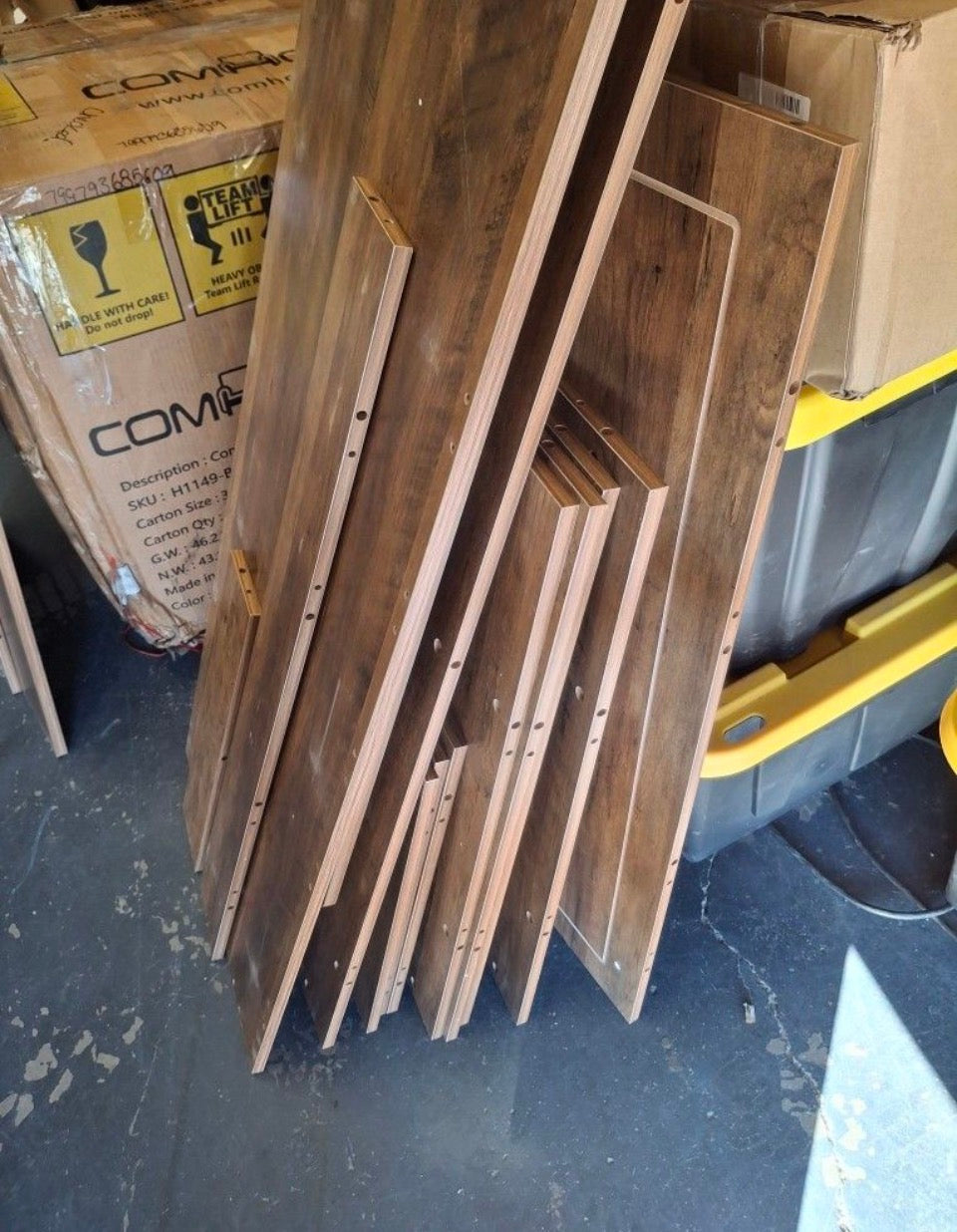 Open Box New BYBLIGHT Kearsten Brown 46.5 in. Bar Cabinet, L-Shaped Home Bar Table with Stemware Racks, 4-Tier Corner Bar Unit for Home Pub