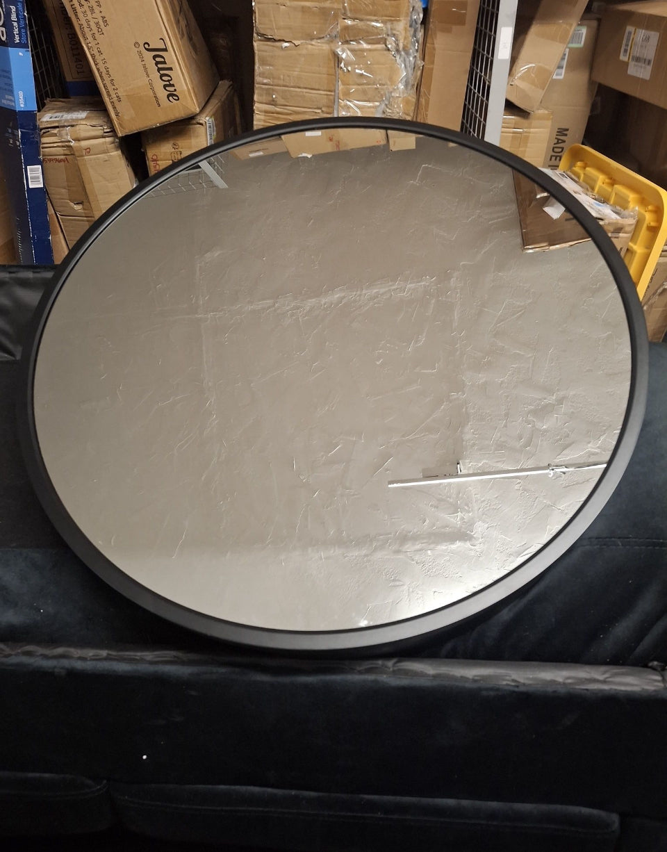 Open Box New Glacier Bay 23.6 in. W x 23.6 in. H Round Matte Black Medicine Cabinet with Mirror