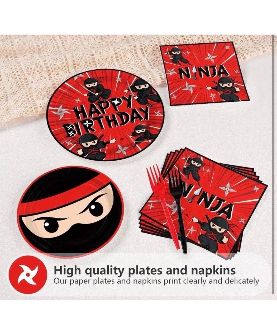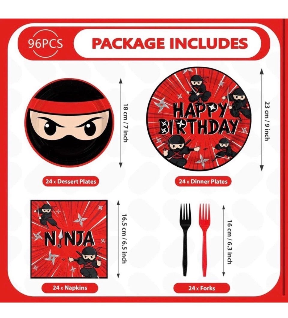 Open Box New Grencian 96 Pcs Ninja Birthday Party Decorations Ninja Warrior Plates