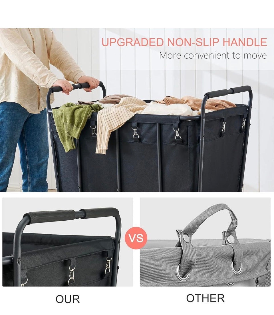 * Versatile Use: This laundry cart is not only for clothes, but also for toys or other items. Suitable for both home and commercial use, it can be used in various rooms such as living room, bathroom, bedroom, laundry room, even laundry shops and hotels