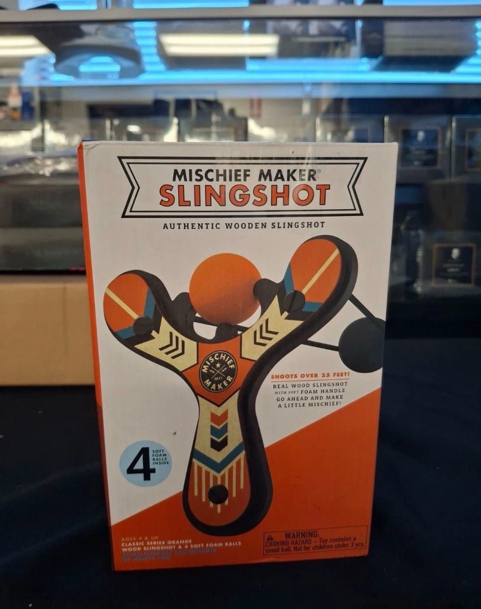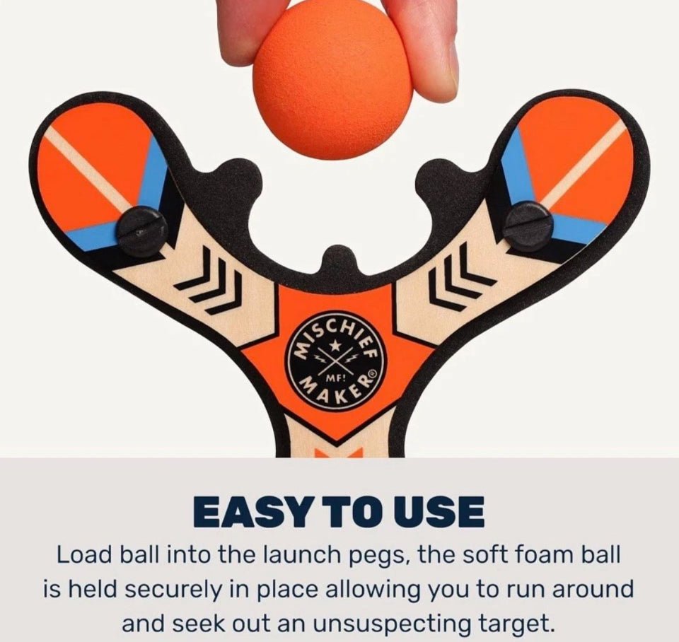 A CLASSIC TOY MADE BETTER FOR MODERN KIDS: Truly, a classic toy slingshot for the kid in all of us — and this time, we've taken it up a notch. The Mischief Maker is made from real wood and is designed to only shoot soft foam balls. With a drawstring storage bag included, the slingshot is ready for good ol' fashioned fun!