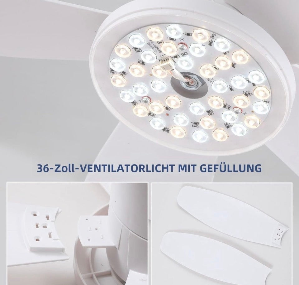 💡【Ceiling Fan with APP/Remote Control】:Enjoy the convenience of remote control and APP control,easy to operate.Adjust 6 kinds of wind speed,3 color lights and brightness,positive and reversible steering,2/4-hour timing!