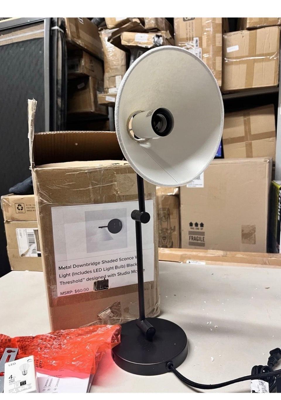 Open Box New Threshold Studio McGee Metal Wall Lamp Blavk Finish Dimmable Switch 20.5”W-7.5”H