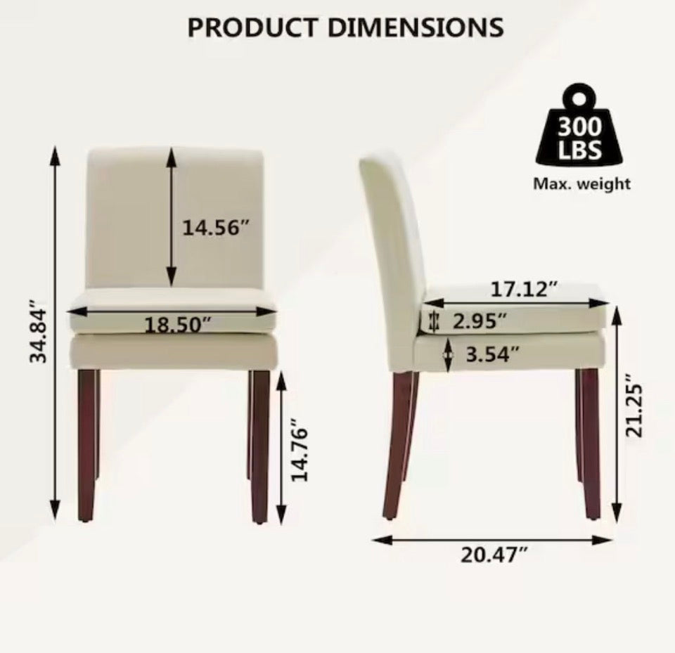 Linen dining room chair dimensions: this kitchen chair measures 34.84 in. high x 17.40 in. wide x 20.47 in. deep the seat dimensions are 18.50 in. wide x 17.12 in. deep, and the seat height is 21.25 in. for a comfortable sitting feel it can support up to 300 lbs. ensuring stability and durability, suitable for both home and commercial use