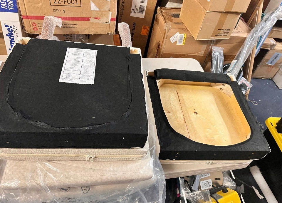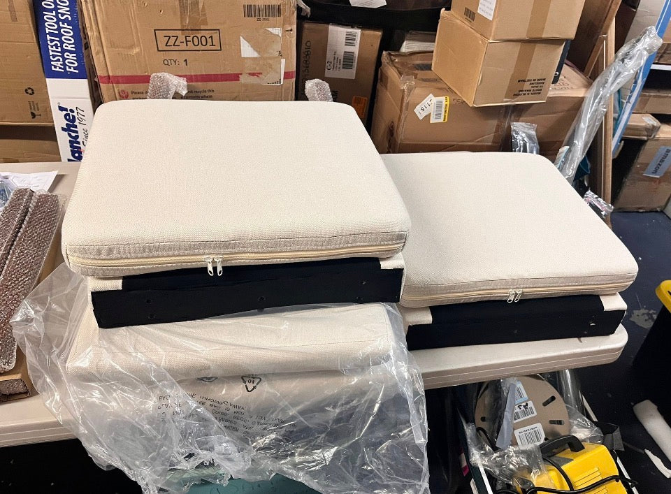 Note: the dining chair's feet and all accessories are at the bottom of the seat, please open the zipper to see them