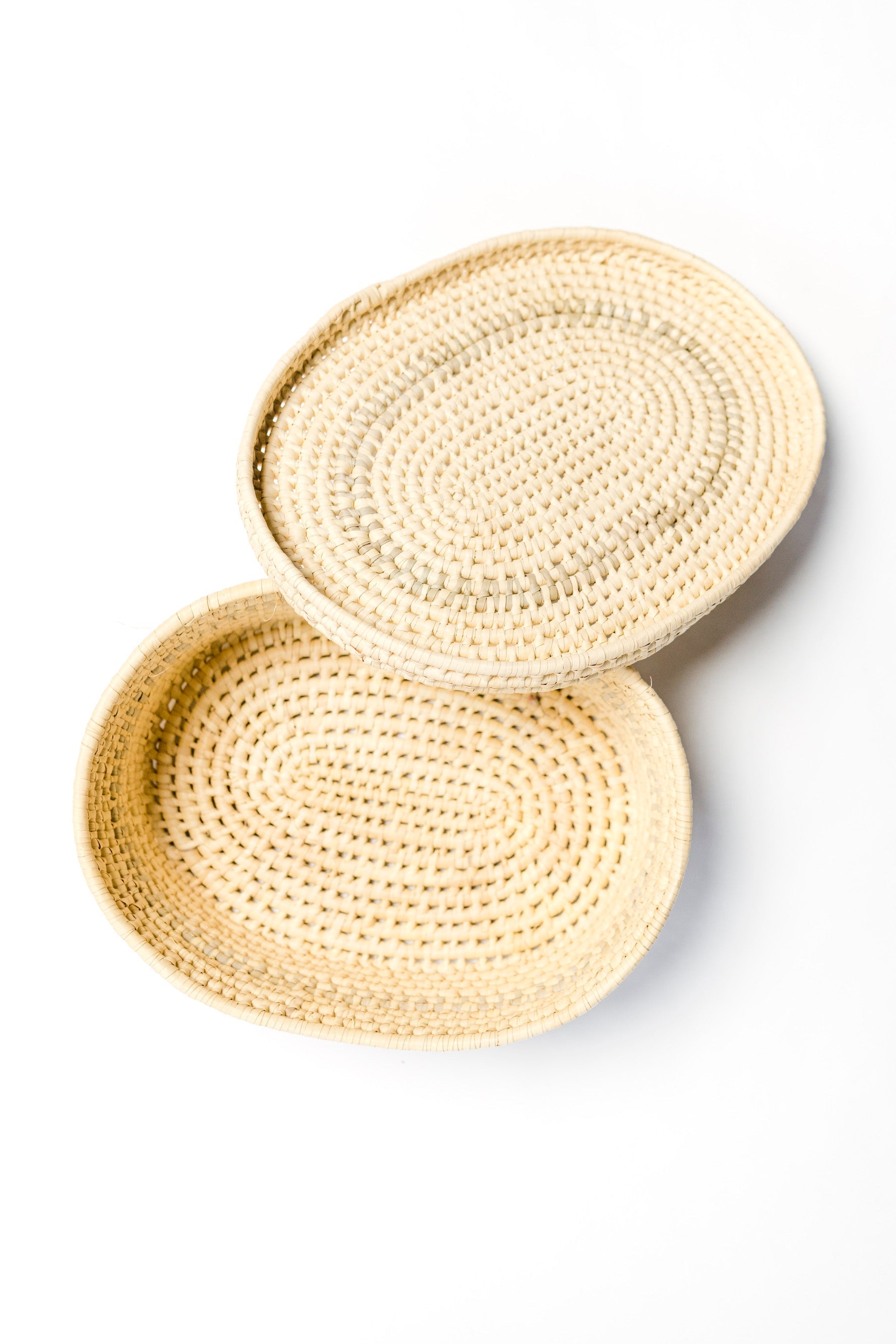 We work with 3 different groups of makers (totaling 20 people!) to make our baskets. Locally sourced dried palm tree leaves are handwoven into a beautiful 2nd Story with each product made; these pieces show off the beauty of Haiti. It takes steady patience and an artist’s feel to work with the palm leaves. Their work speaks for itself!