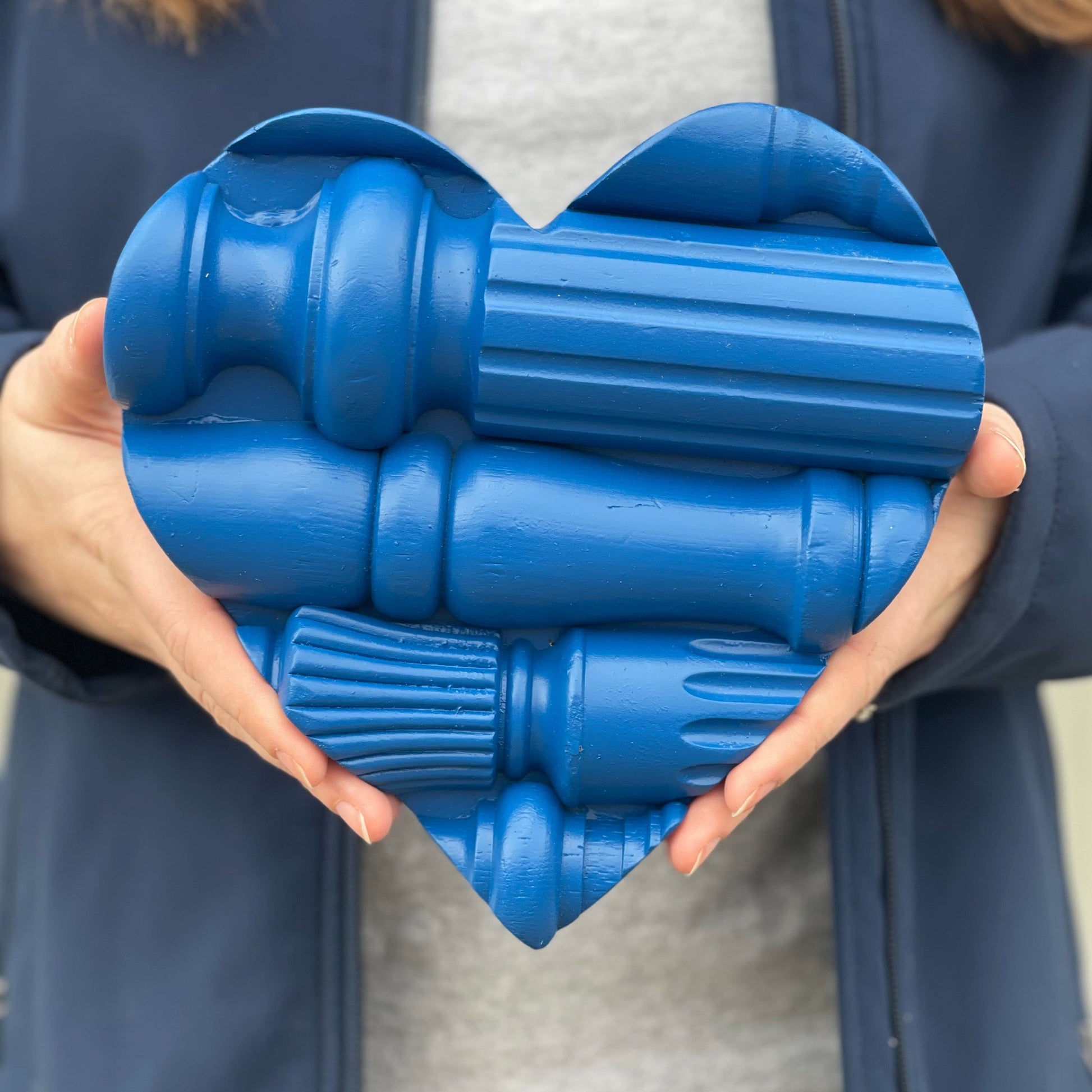 We make these beautiful curvy hearts with beautifully carved spindles reclaimed from the legs of antique pianos. Originally made as little pieces of art for our 365 Heartworks Cards, now we’re making them to order in small batches every few months.