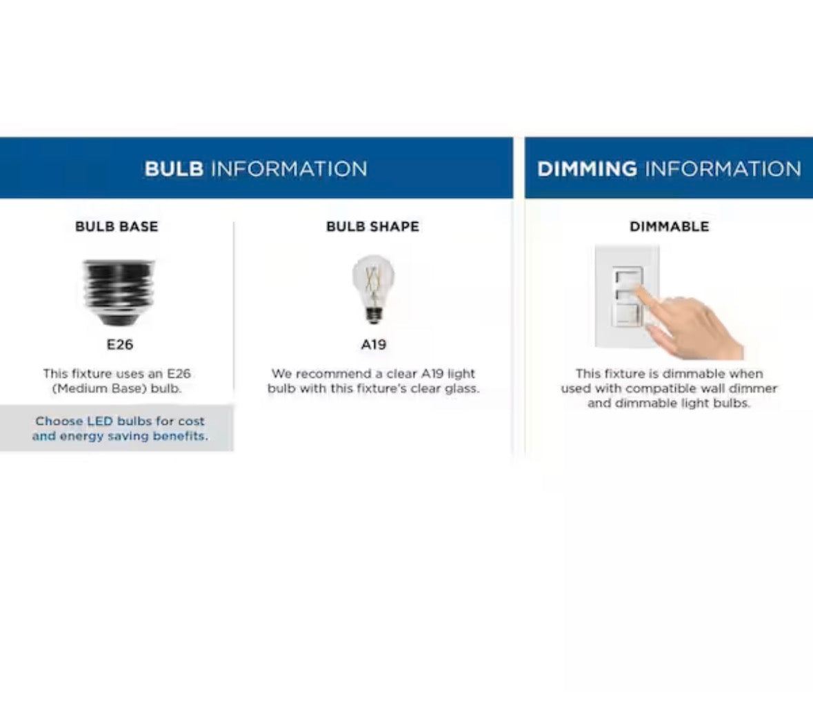 - Uses six 60-Watt maximum medium base bulbs, or LED equivalent, that are sold separately, fully dimmable when used with dimmable bulbs