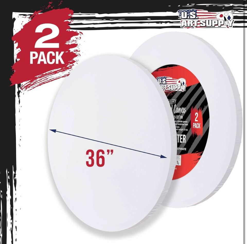 U.S. Art Supply 36 inch Diameter Round Gallery Depth 1-1/2" Profile Stretched Canvas 2-Pack - Acrylic Gesso Triple Primed 12-Ounce 100% Cotton Acid-Fr