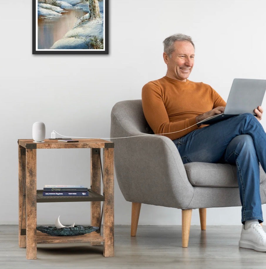 - Optimal Space Utilization: Designed to fit seamlessly in small spaces, this side table with a built-in charging station maximizes functionality without sacrificing style. Its compact design makes it an ideal solution for rooms with limited space.