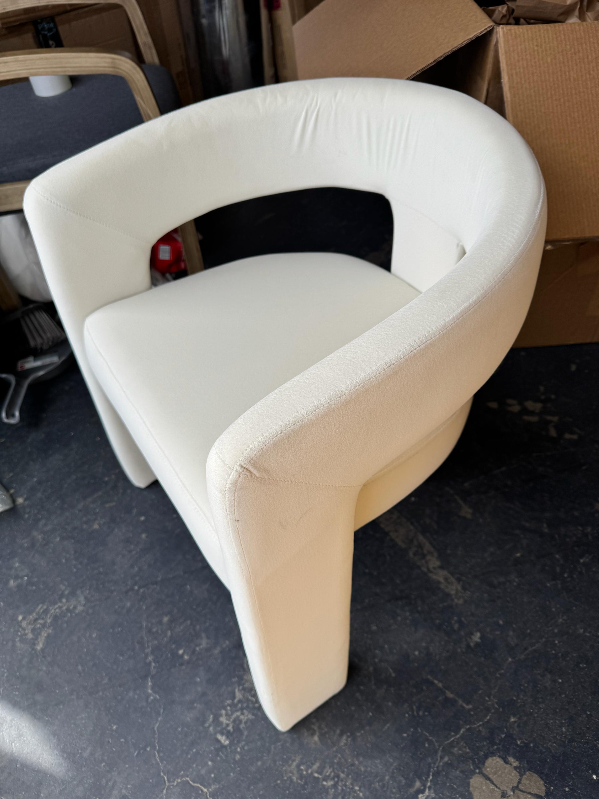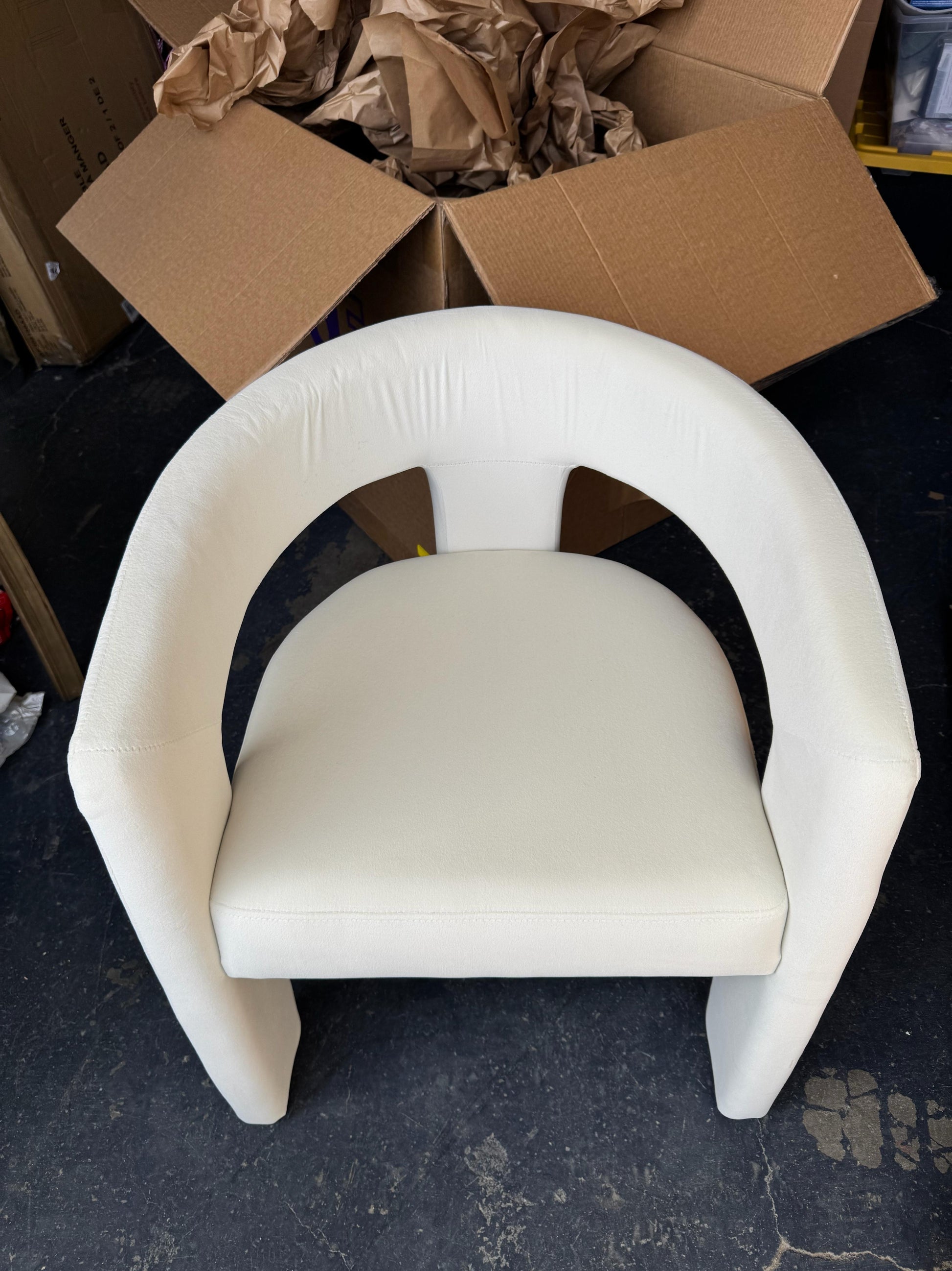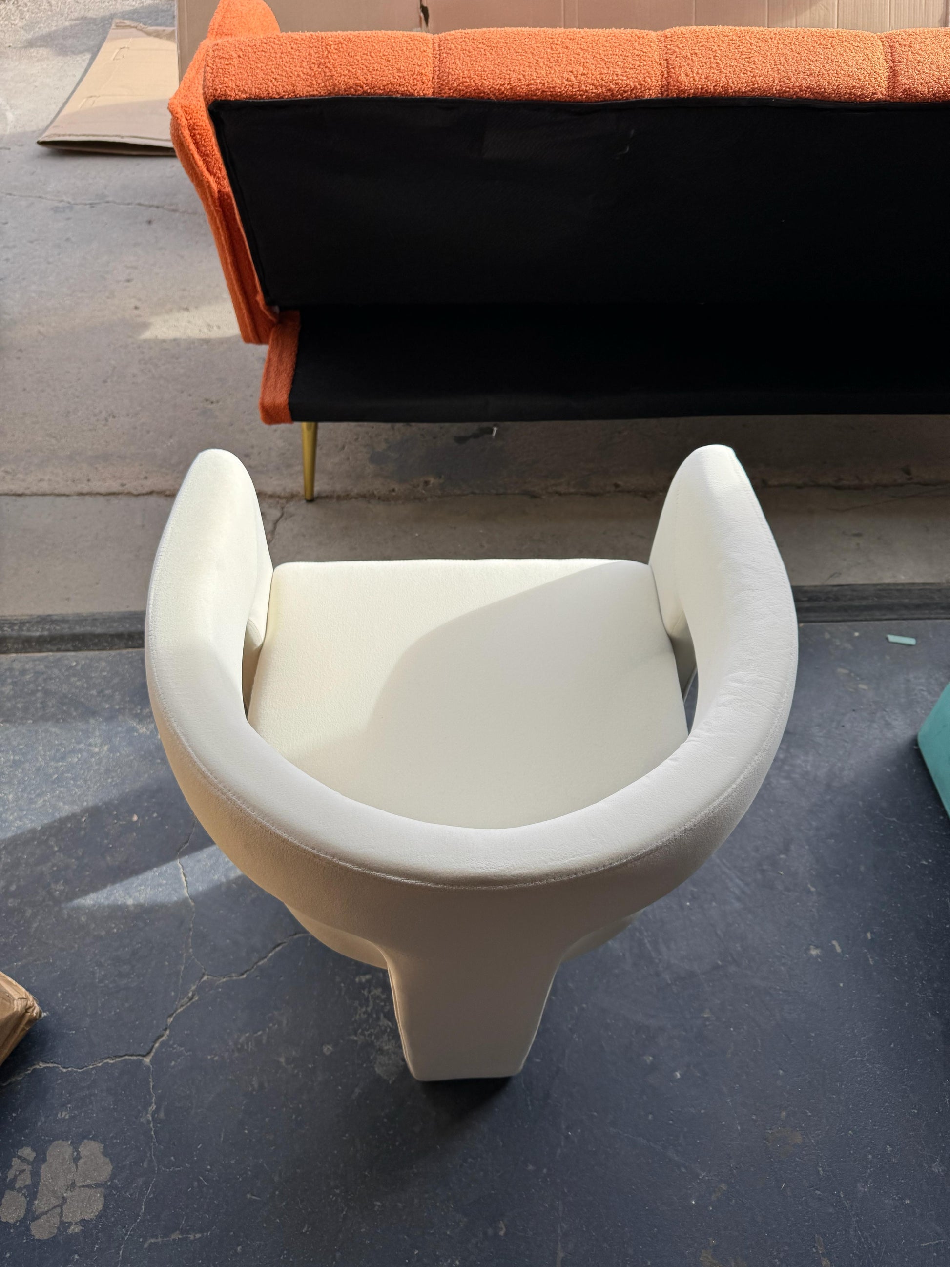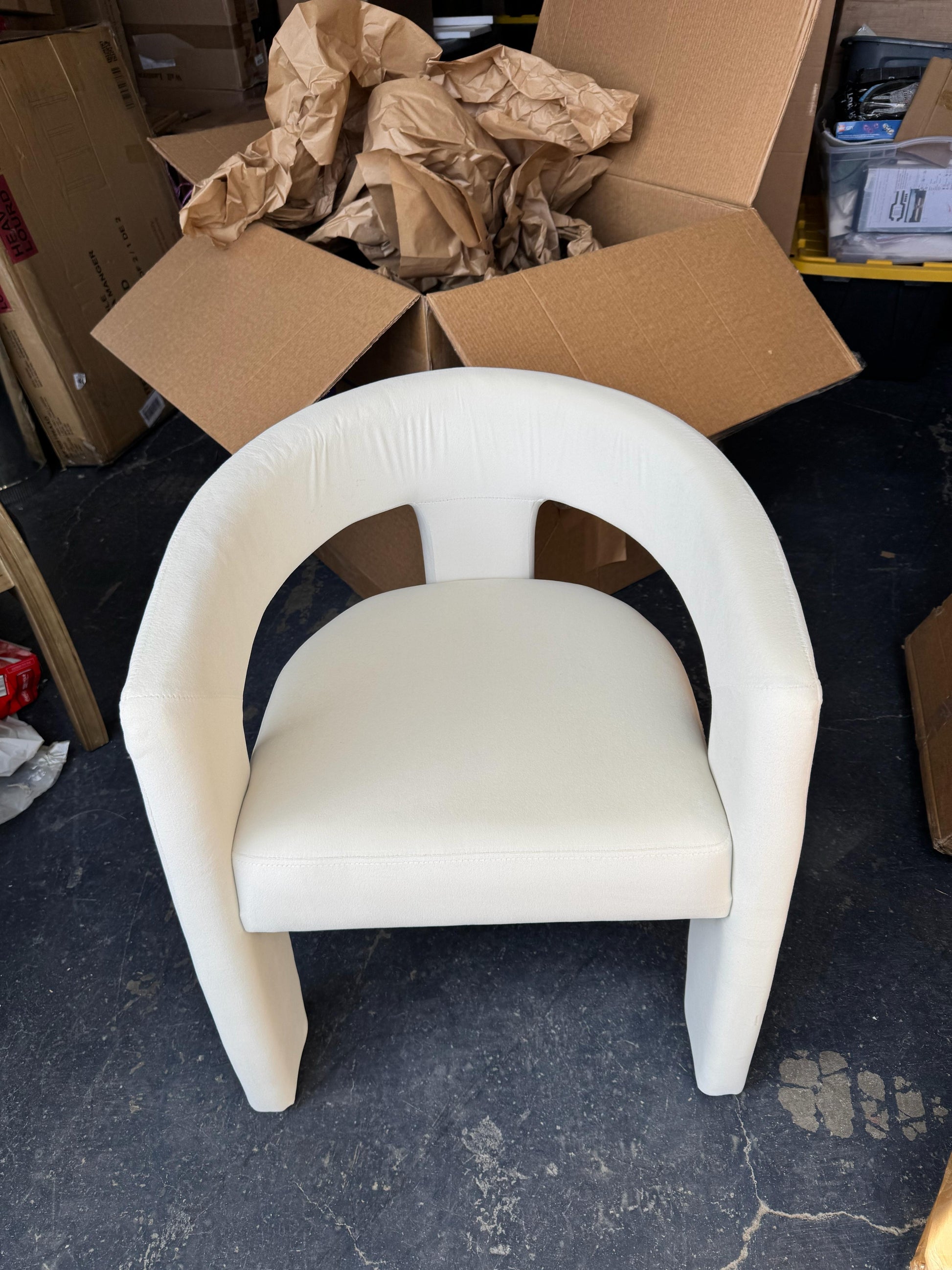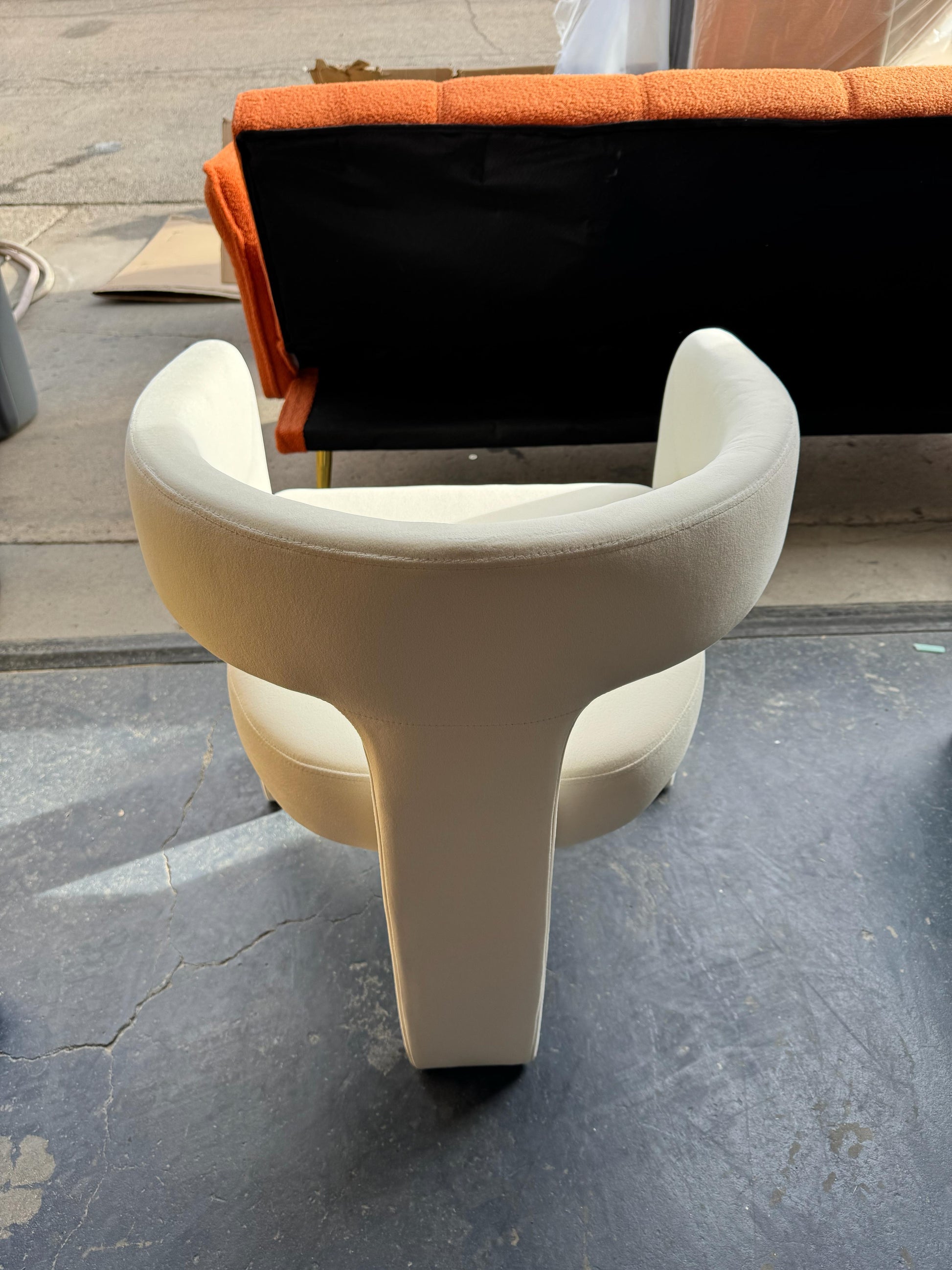A high-performance, upholstery lends a refined softness to the clean, tailored lines of this dining room chair. Its sculptural form features a unique three-legged design that will bring an elevated touch to a dynamic space. Style this dining chair with an understated, modern dining table for everyday elegance. The shapely silhouette will elevate the tone of your dining room or living space with both modern appeal and practical touch. Can float from your dining room to a home office for a chic and easy place to land.