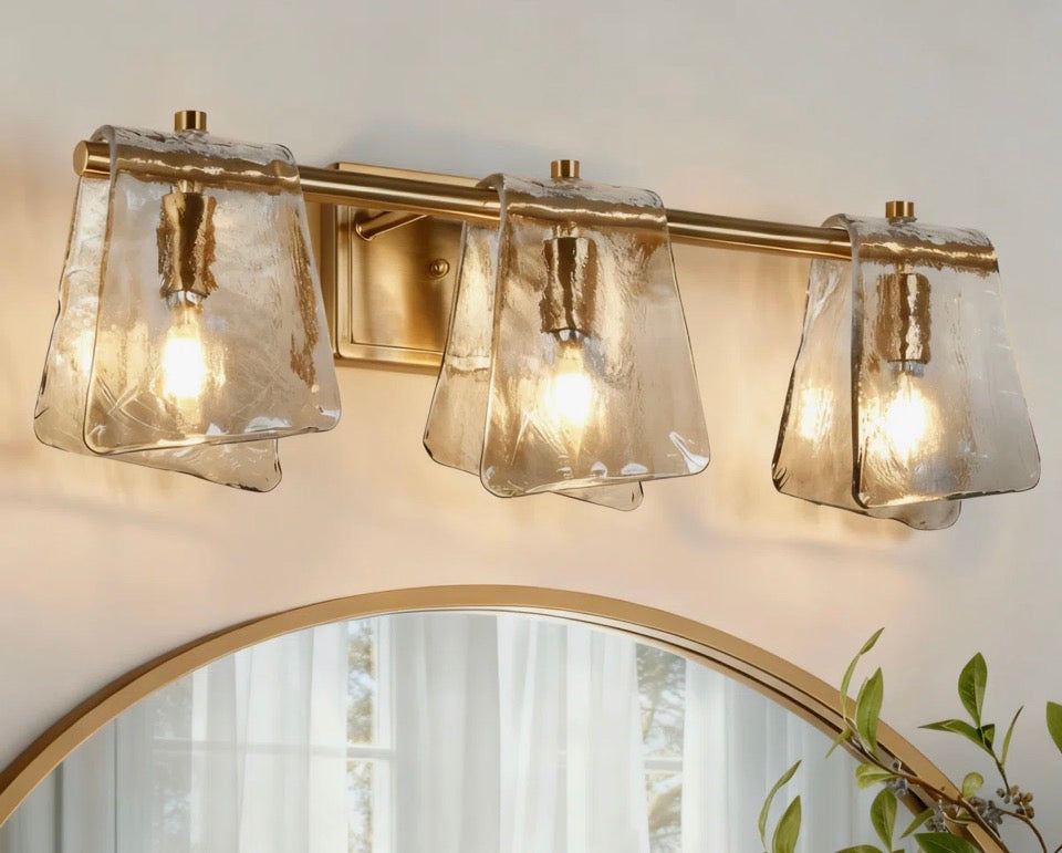 Upgrade your bathroom with this chic 3-light vanity light, a perfect blend of functionality and elegance. Crafted with a refined brass-plated metal frame and complemented by unique glass shades in a subtle gray hue, this vanity light exudes sophistication. This bathroom lighting is perfect for your vanity or mirror and you could affix it to the wall above your cabinet, hallway, entryway, or other nooks. This fixture is compatible with a dimmer switch (not included), so you'll always have the right amount of light day or night.